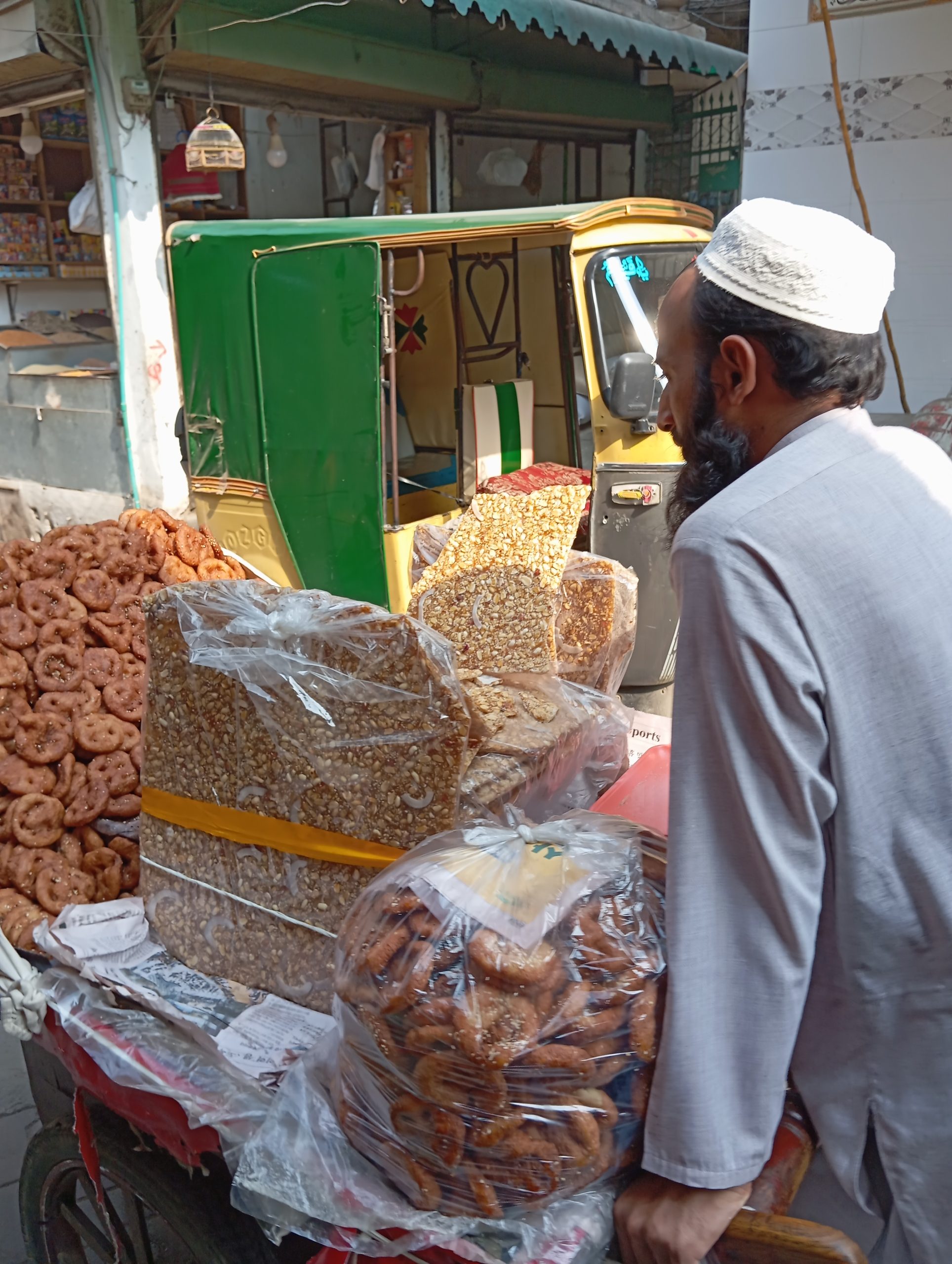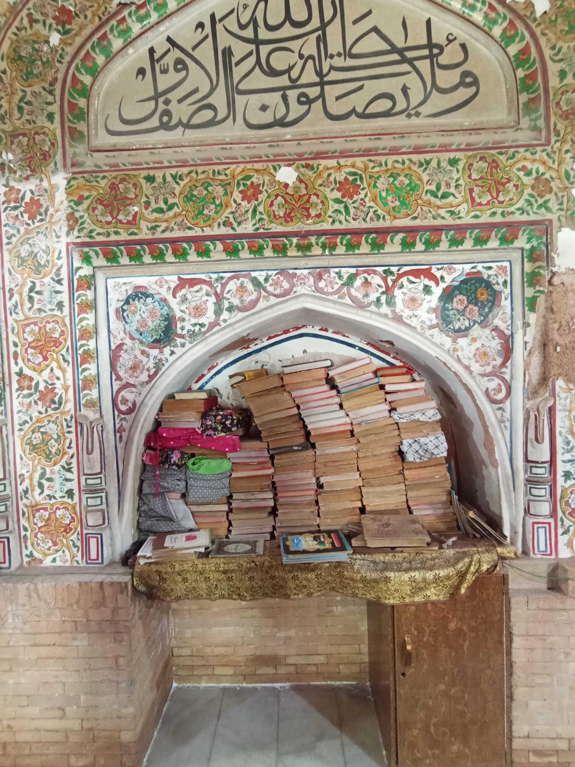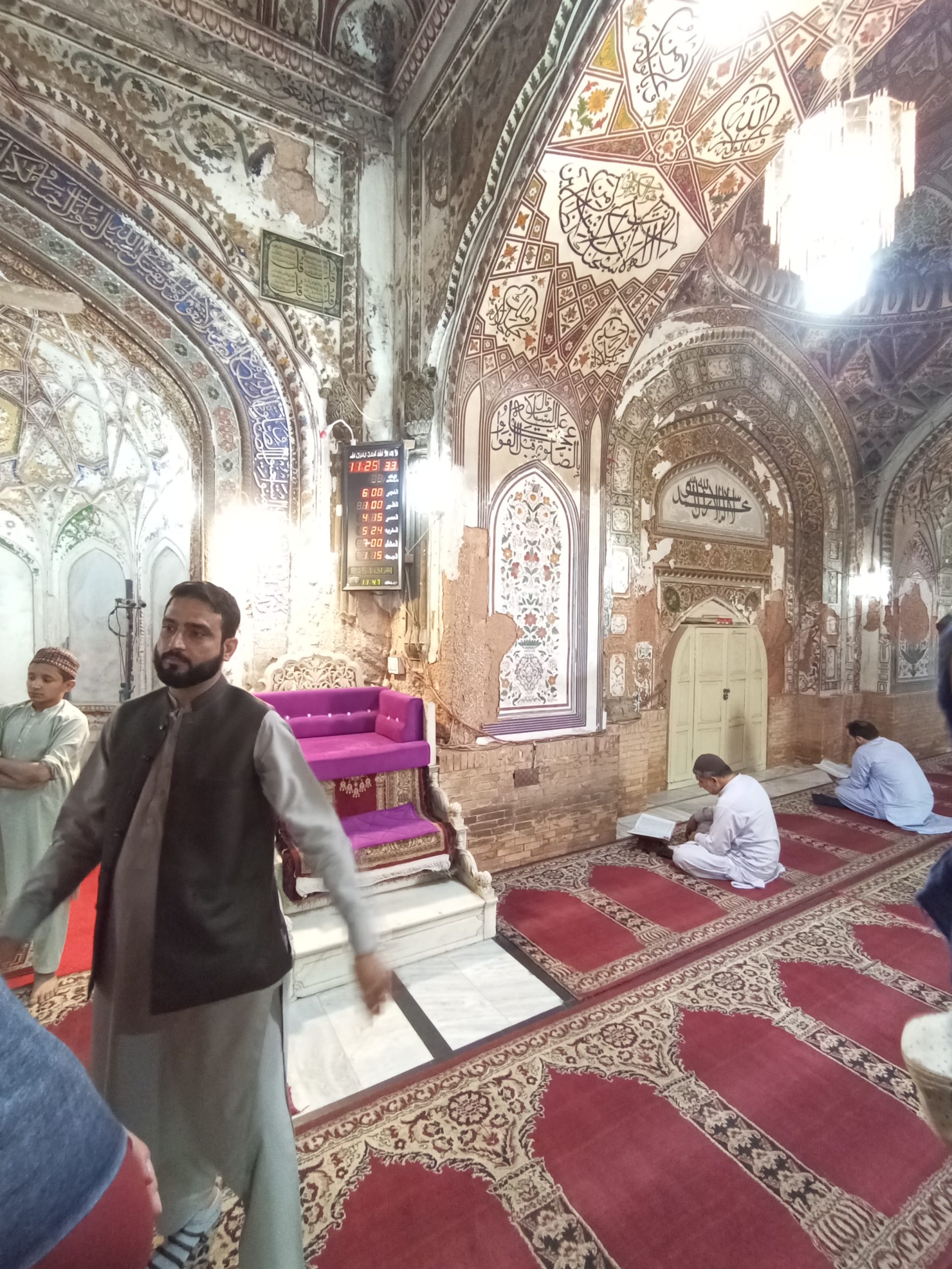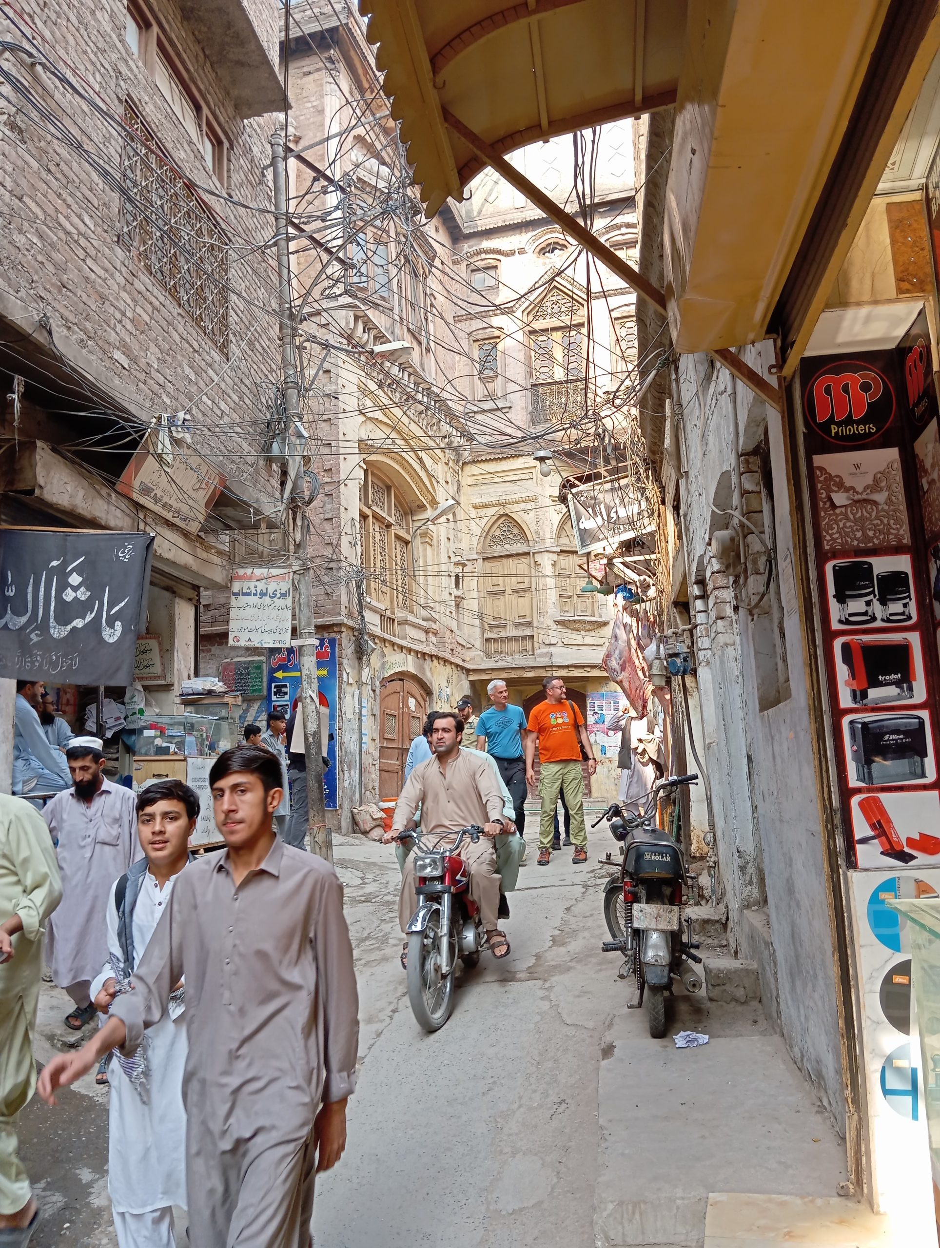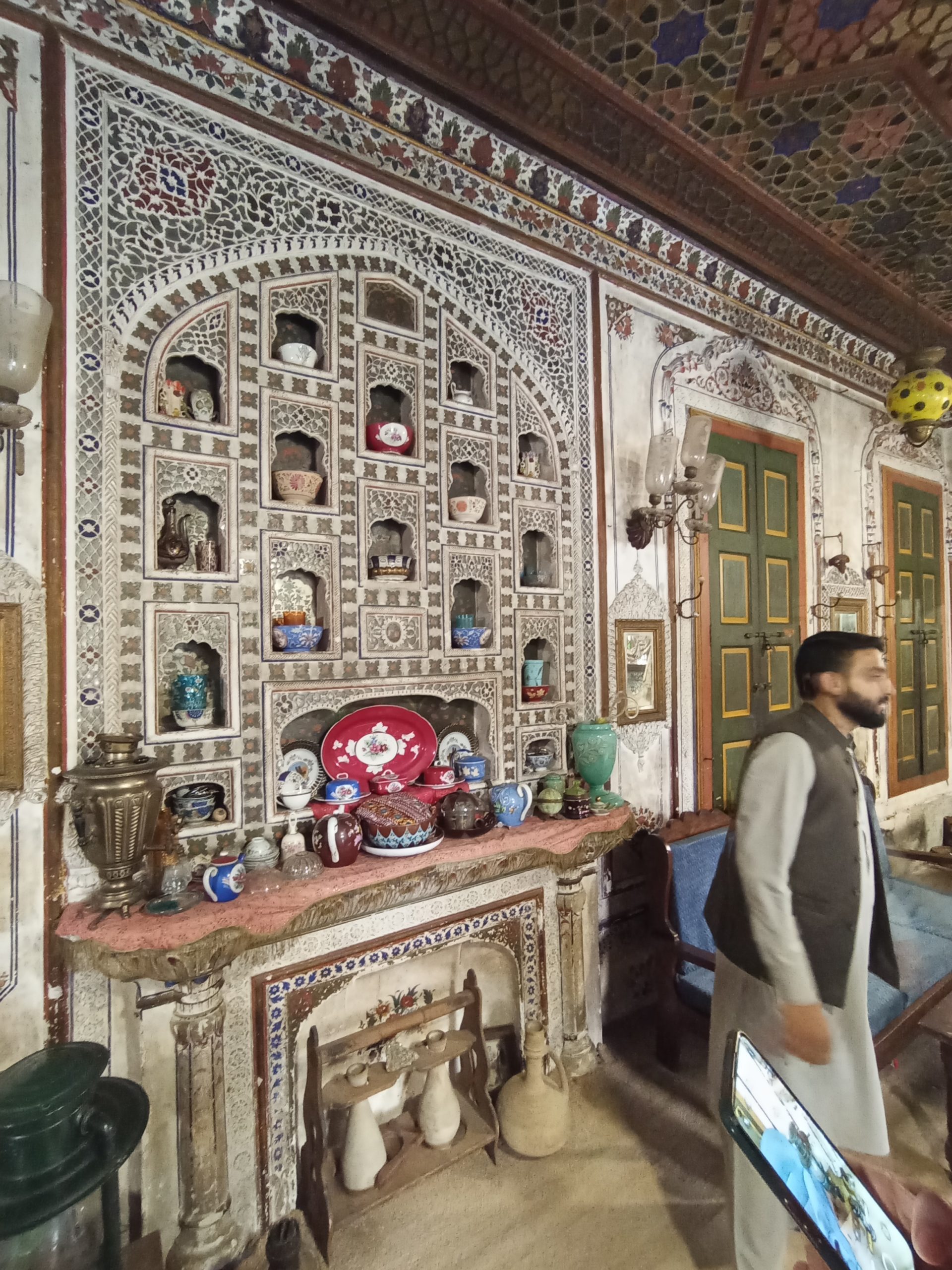 Przejechaliśmy rikszami przez zatłoczone ulice. Przespacerowaliśmy się zabytkową dzielnicą, wśród starych drewnianych domów. Peszawar leżał na trasie jedwabnego szlaku i ulice te zamieszkiwały dawniej bogate rodziny kupieckie. Niespodziewanie zostaliśmy zaproszeni do jednego z takich domów. Jego właściciel (potomek dawnych kupców ) widząc naszą grupę zaproponował, byśmy zobaczyli jak mieszka. Po przejściu drewnianego przedsionka weszliśmy na wewnętrzne patio. Dom miał kilka pięter, pięknie rzeźbione drzwi i fasady. Był wyraźnie nadgyziony zębem czasu. Miałam nawet obawy, czy podłoga się pod nami nie zapadnie, gdy wszyscy weszliśmy do jednego z pokojów. Centrum każdego pomieszczenia stanowiła drewniana rzeźbiona półka, trochę w kształcie ołtarza. Jej wnęki wypełniały ozdobne naczynia. W oknach były kolorowe witraże. Sufit był także drewniany i pięknie rzeźbiony.
