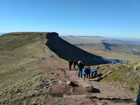 Latem przy ciepłym i mniej wietrznym dniu ( o ile takie się tu w ogóle zdarzają), to fantastyczne miejsce na biwak. Choć zapewne w bardziej sprzyjających warunkach atmosferycznych byłyby tu tłumy. I tak dziś było sporo ludzi. Śmialiśmy się, że łatwo na szlaku rozpoznać Walijczyków. Z reguły są bardzo lekko ubrani, bez czapek, rękawiczek, z wystawionymi na zimno gołymi częściami ciała.