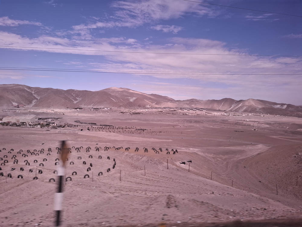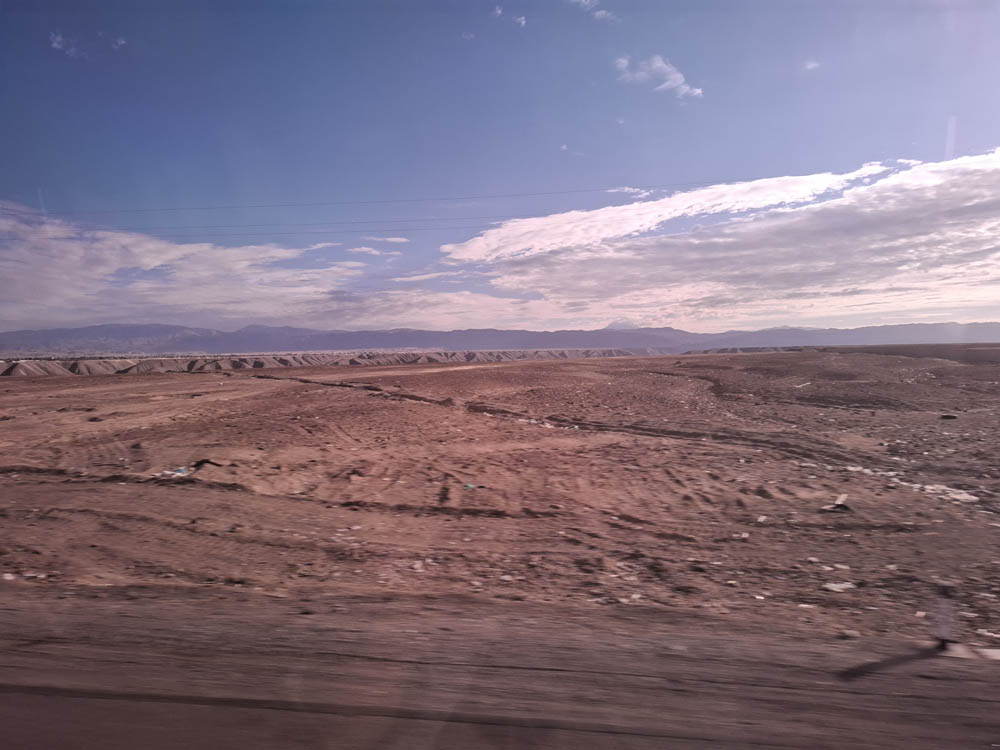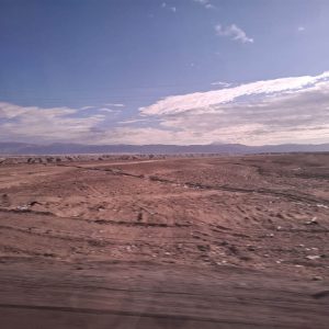 Droga była jednopasmowa, głównie jeżdżą nią ciężarówki, które zwłaszcza na podjazdach spowalniały podróż. Gdy zrobiło się jasno mogliśmy podziwiać pustynne, górskie krajobrazy. W dolinach skupiska domków, małych, widać, że bardzo biednych. Zastanawiam się, z czego żyją tu ludzie, bo ziemia wyglądała na tak nieprzyjazną i suchą, że trudno tu pewnie cokolwiek uprawiać.