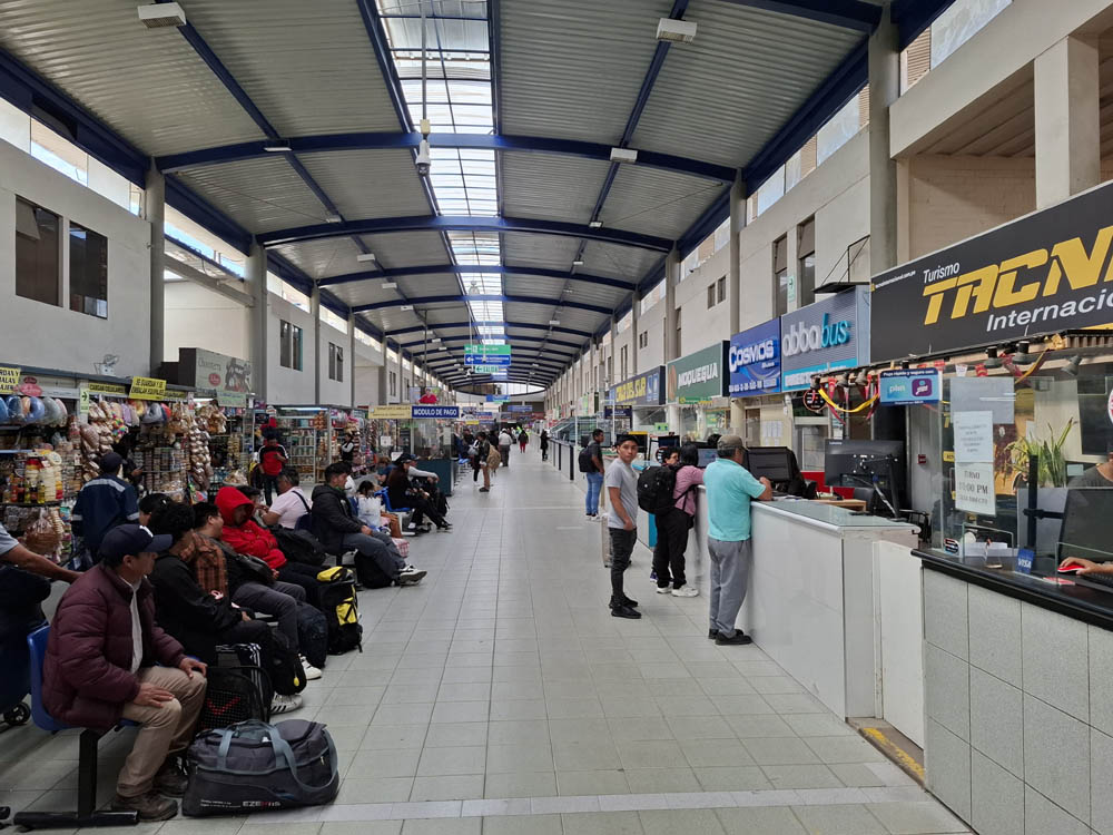Z Nazca do Arequipy jechaliśmy nocnym busem. Na dworcu autobusowym było sporo czekających osób i co kilka minut podjeżdżały nocne busy dalekobieżne, którymi można było jechać do Limy czy właśnie na południe do Arequipy.