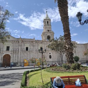 Arequipa to duże miasto, drugie pod względem liczby mieszkańców po Limie. W jej tle dwa majestatyczne wulkany. Chachani 6075m n.p.m. podobno jeden z najłatwiejszych tysięczników do zdobycia, bo autem terenowym można wjechać aż na 5000mnpm i stąd ruszyć na szczyt pokryty śniegiem. Ten wulkan jest uśpiony od tysięcy lat. Drugi – El Misti 5822m n.p.m. czynny, z ostatnią niewielką erupcją w 1985 r.