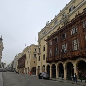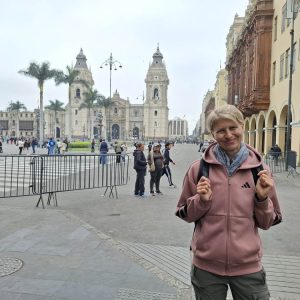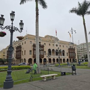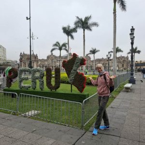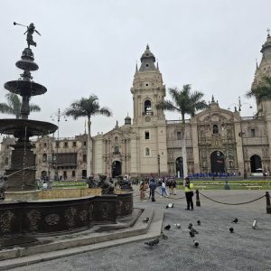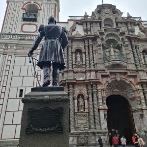 Cały czas towarzyszy nam garúa. Jest to charakterystyczna mglista mżawka występująca na wybrzeżu Peru, zwłaszcza w rejonie Limy i pustyni Atakama. To nie jest klasyczny deszcz, lecz bardzo drobne kropelki wody zawieszone w powietrzu, przypominające wilgotną mgłę. Zjawisko powoduje różnica temperatur między zimnym oceanem ( prąd Humboldta), a cieplejszym powietrzem nad lądem powoduje kondensację wilgoci. Przez to niebo jest szare. Spacerem ruszyliśmy na zwiedzanie stolicy. Przeszliśmy po obu placach, posłuchaliśmy historii o Francisco Pizzaro, hiszpańskim konkwistadorze, który zasłynął jako zdobywca imperium Inków.