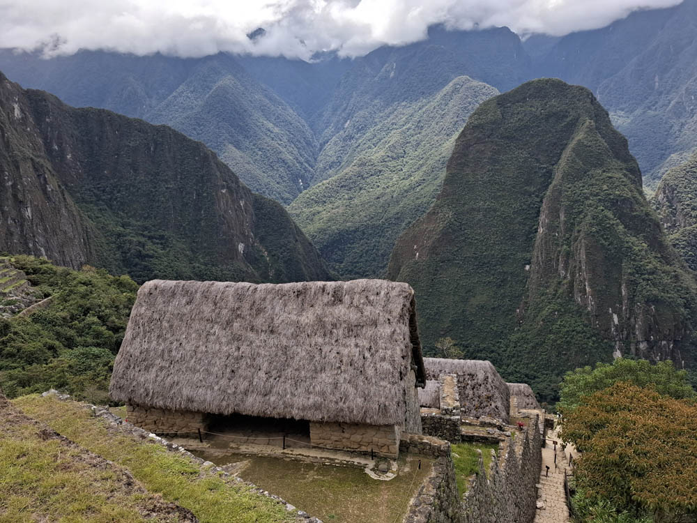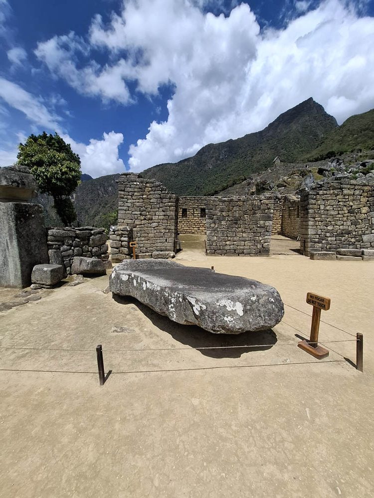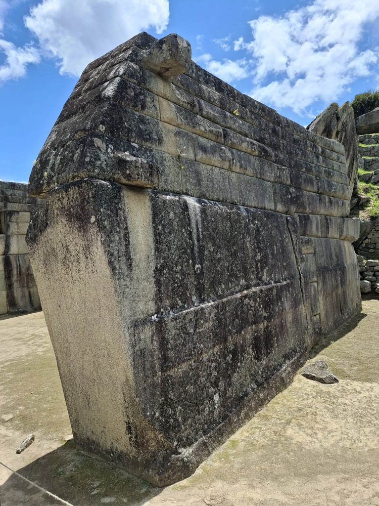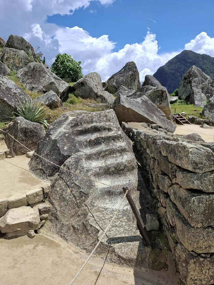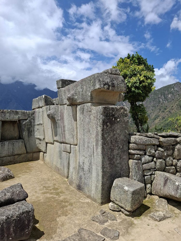 Przewodnik pokazywał nam ciekawsze budynki, które pełniły rolę np. świątyń czy obserwowania nieba. Większość budynków była dość niechlujnie zbudowana porównując to z idealnie dopasowanymi olbrzymimi blokami skalnymi, które widzieliśmy wcześniej w Ollantaytambo czy choćby na ulicach Cusco. Udało mi się dostrzec ledwie kilka fragmentów murów, które miały większą precyzję spasowania. Te podobno były pierwotne, oryginalne. Dużą część obiektów odbudowano, po wykarczowaniu dżungli, która porastała górę. Naprawdę trudno uwierzyć w to, że i jedne i drugie zbudowała ta sama cywilizacja. Jak dla mnie i dla yacoola jest tu więcej zagadek inżynieryjnych i architektonicznych niż sensownych odpowiedzi. Zbocza tworzą tarasy uprawne, które produkowały żywność w ilościach mogących wyżywić 4 tys. ludzi, a jednocześnie mówi się, że na stałe Machu Picchu zamieszkiwało ok 1,5 tysiąca osób. Były tu zaawansowane systemy nawadniające te zbocza. Stosowano systemy hydrauliczne, które w Europie opracowano dopiero 150 lat później.