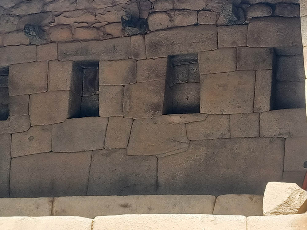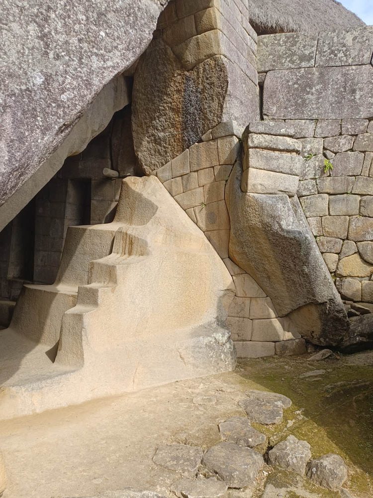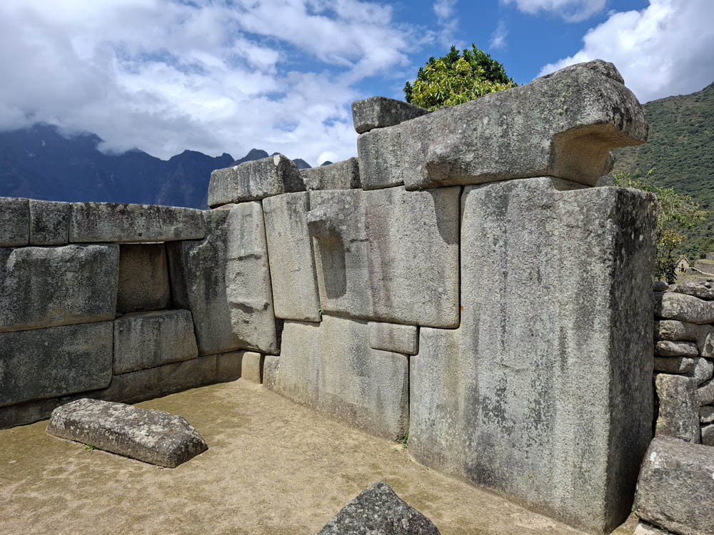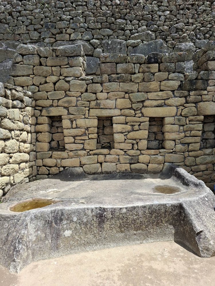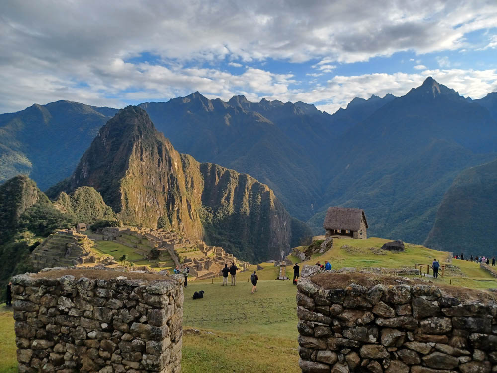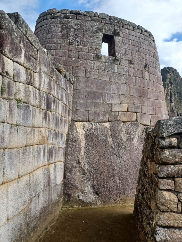 Przewodnik pokazywał nam ciekawsze budynki, które pełniły rolę np. świątyń czy obserwowania nieba. Większość budynków była dość niechlujnie zbudowana porównując to z idealnie dopasowanymi olbrzymimi blokami skalnymi, które widzieliśmy wcześniej w Ollantaytambo czy choćby na ulicach Cusco. Udało mi się dostrzec ledwie kilka fragmentów murów, które miały większą precyzję spasowania. Te podobno były pierwotne, oryginalne. Dużą część obiektów odbudowano, po wykarczowaniu dżungli, która porastała górę. Naprawdę trudno uwierzyć w to, że i jedne i drugie zbudowała ta sama cywilizacja. Jak dla mnie i dla yacoola jest tu więcej zagadek inżynieryjnych i architektonicznych niż sensownych odpowiedzi. Zbocza tworzą tarasy uprawne, które produkowały żywność w ilościach mogących wyżywić 4 tys. ludzi, a jednocześnie mówi się, że na stałe Machu Picchu zamieszkiwało ok 1,5 tysiąca osób. Były tu zaawansowane systemy nawadniające te zbocza. Stosowano systemy hydrauliczne, które w Europie opracowano dopiero 150 lat później.