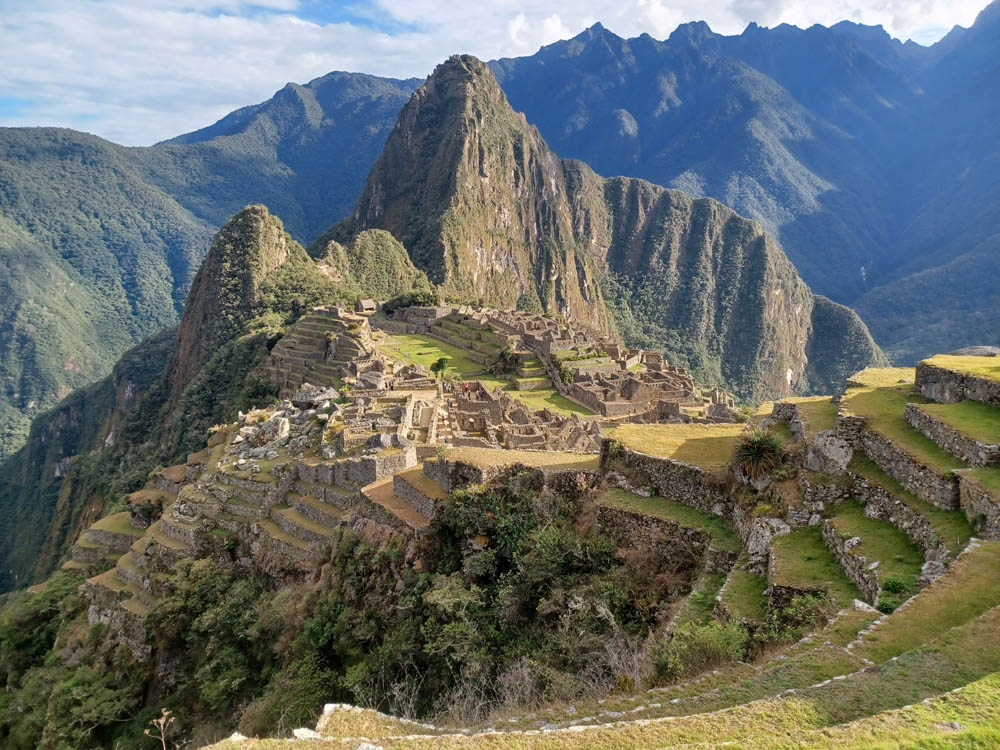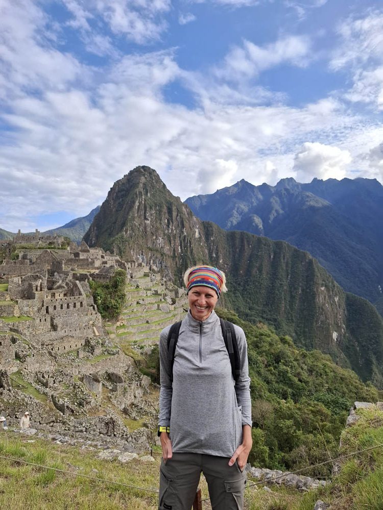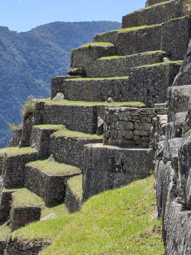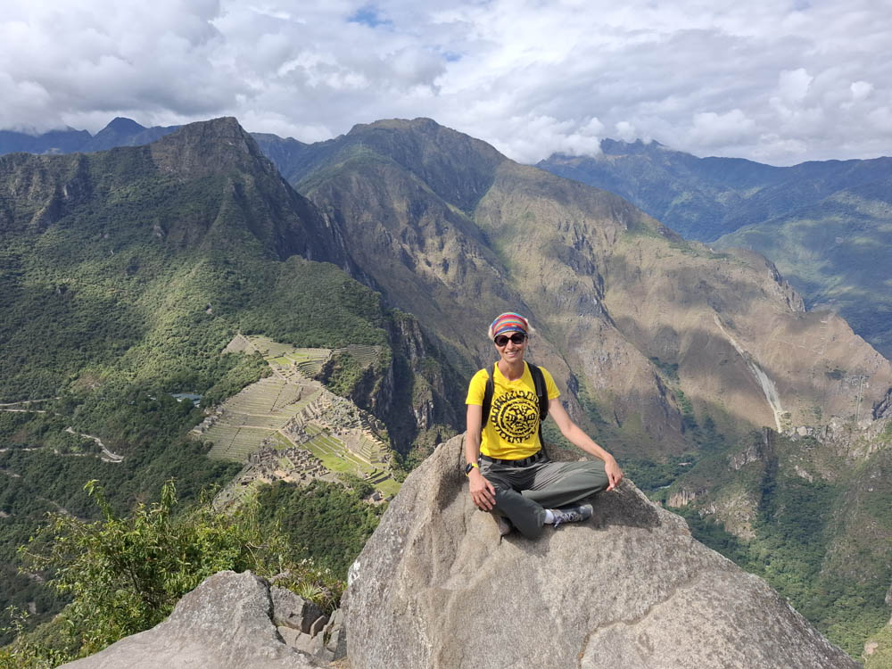 Ja jako pierwszy szlak miałam wejście na Wayna Picchu (Młoda Góra). To góra, pionowo wznosząca się nad Machu. Szlak nie jest długi, ale bardzo wymagający. Momentami wąskie stopnie prowadzą pionowo jak po drabinie. Nazywane są podobno schodami śmierci. Zabezpieczeniem jest gdzieniegdzie stalowa lina. Pokonać trzeba 370m przewyższenia, co na tej wysokości daje się odczuć. Widoki z góry piękne, na dolinę rzeki Urubamba i zielone góry porośnięte gęsto roślinnością. Samo Machu dość daleko położone z tego punktu. Uważam, że szlak nie jest dla każdego, to duży wysiłek do tego w zależności, na którą godzinę ma się kolejny szlak robiony pod presją czasu. Ja wejście do ruin Machu miałam na 10.00. Dozwolony jest poślizg 45 min. Więc dość szybko trzeba było schodzić, tym razem pionowo w dół, by zdążyć na czas.