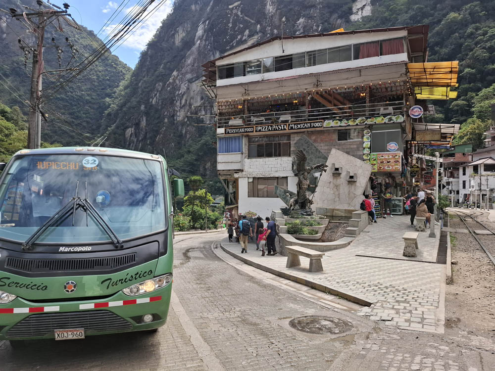 Po wyjściu ze stacji przechodzi się przez duże zadaszone targowisko. Wygląda to trochę jak przymusowe przejście przez strefę wolnocłową na lotniskach. To nieduża wioska, w zasadzie jedna ulica, wzdłuż rzeki, w dolinie otoczonej zielonymi wzgórzami. Ulica gęsto zabudowana hotelami, hostelami, restauracjami. Budynki często są niedokończone, pobudowane z kilku surowych pięter, z tego zagospodarowane jedno czy dwa. Tłumy turystów. Wieczorami jedna wielka impreza.