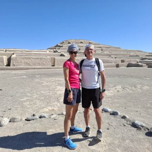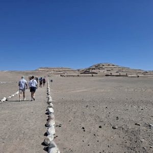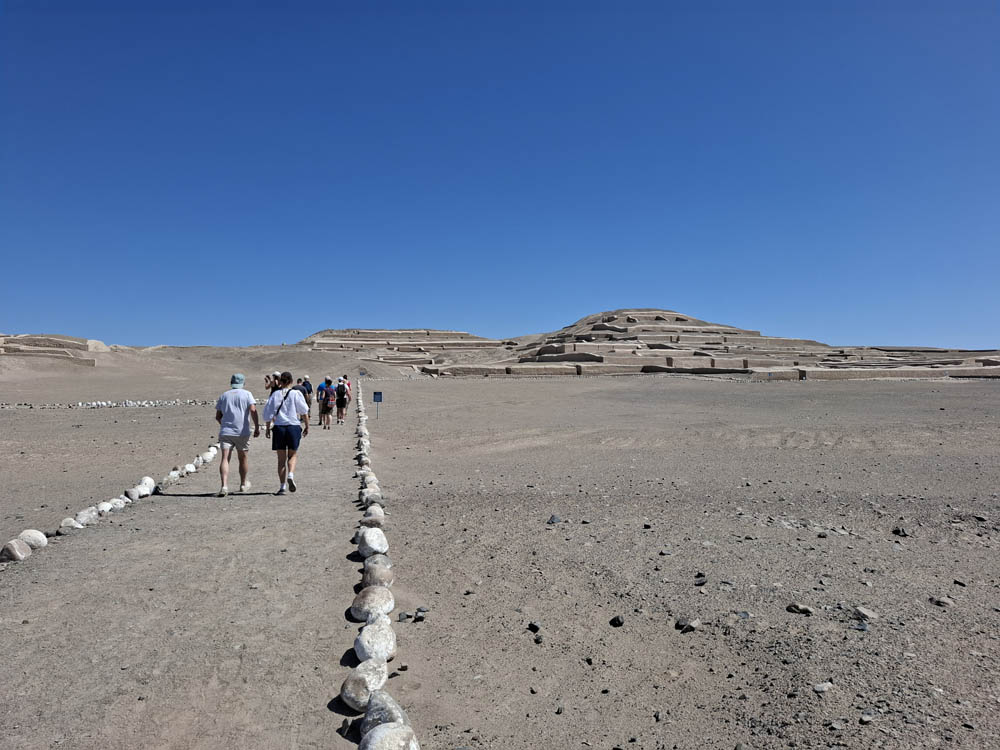 Szutrową drogą przez pustynie pojechaliśmy do kompleksu świątyń Cahuachi. Odkryli je włoscy archeologowie. Były niemal zupełnie przysypane piaskiem po wielkiej powodzi, która nawiedziła ten rejon ok 500 wieku naszej ery. Jesus wielokrotnie powtarzał, że rząd peruwiański nie jest zainteresowany finansowaniem wykopalisk. Wszystko niszczeje, jest rozkradane, albo spoczywa pod ziemią nadal nieodkryte. Jak mówi Jesus, dopóki jest pod ziemią przynajmniej jest bezpiecznie. 10 lat temu miejsce to badali także Japończycy. Przy użyciu drona, który leciał kilka metrów nad ziemią odkryli setki małych geoglifów, które z samolotu nie są widoczne. Odkryli też, że Świątynia Cahuachi jest połączona z płaskowyżem Nazca szeroką utwardzoną droga. Prowadzi ona na plac, z którego odchodzą kolejne drogi do poszczególnych geoglifów.