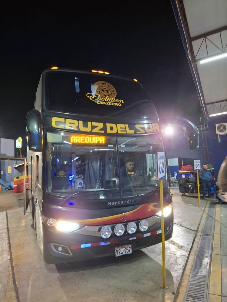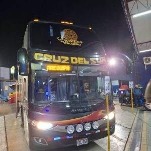 Wróciliśmy do Nazca. Zjedliśmy późny obiad, pochodziliśmy po tętniących życiem uliczkach miasta. Akurat były obchody święta religijnego. Cały główny plac był wypełniony ludźmi. Pod kościołem energicznie grała orkiestra. Festyn na całego. Koło 22.00 poszliśmy na dworzec autobusowy. Ruszamy nocnym busem do Arequipy. Powoli będziemy zwiększać wysokość nad poziomem morza.