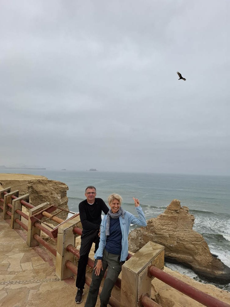 Pustynia była niesamowita. Pod rozwalającym się asfaltem, była sól. Dowód, że kiedyś był tu ocean. No i oczywiście całe mnóstwo muszli w piasku. Zajechaliśmy na wiele punktów widokowych, widzieliśmy m.in czerwoną plażę i zawaloną w wyniku trzęsienia ziemi kamienną strukturę „La Catedral” – przypominała God’s Window na Malcie. Były też ptaki, kormorany, pelikany i kuzyni kondorów, które dały pokaz szybowania. Byliśmy oczarowani tym miejscem.