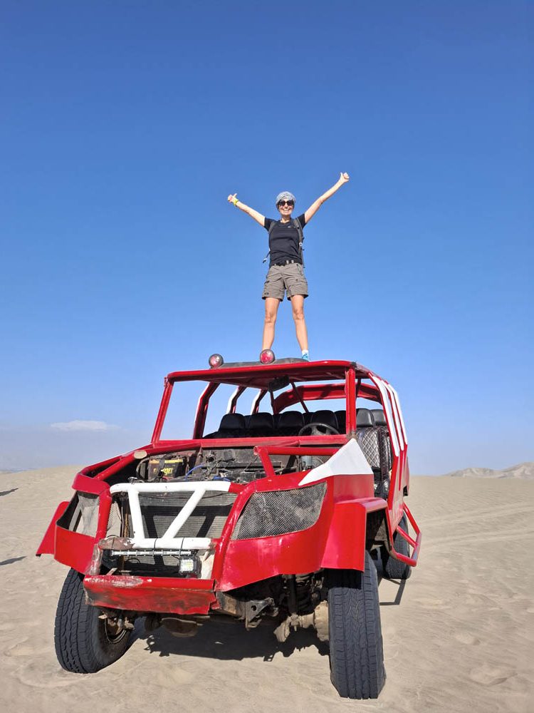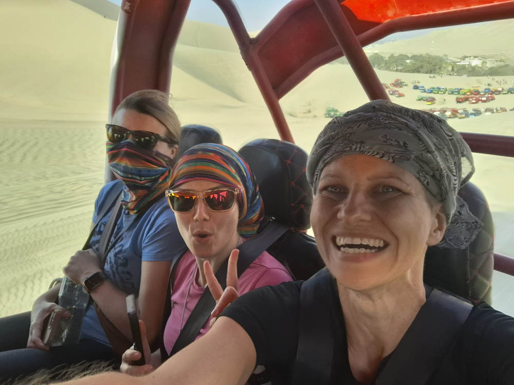 Koniec dnia to totalne szaleństwo w buggy po wydmach. Nasz kierowca był świetny! Z impetem podjeżdżał i zjeżdżał z piaskowych gór. Była przerwa na fotosesje i zjazdy z wydmy na deskach. Ubaw po pachy.