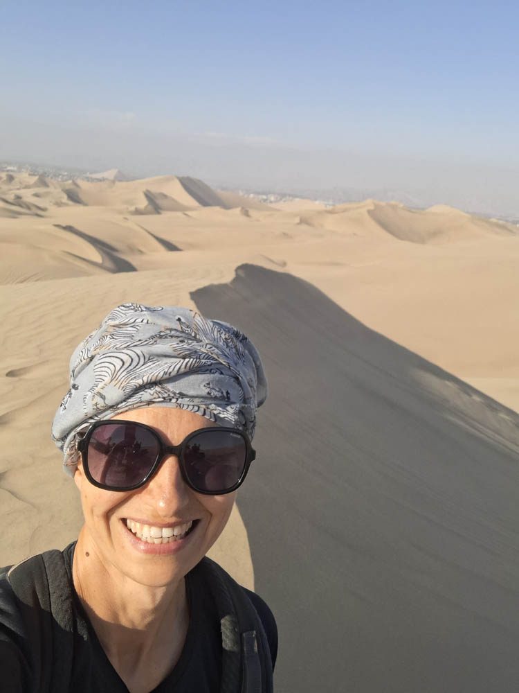 Jacek został ze mną i zamiast tego pojechaliśmy na prywatną wycieczkę do Rezerwatu Paracas. To była świetna decyzja. Rezerwat jest pustynią, poza nami nie było w zasadzie nikogo. Większość turystów od rana płynie właśnie w rejs, a potem odwiedza to miejsce. Totalna cisza i spokój. I te przestrzenie. Uwielbiam takie miejsca. A jak do tego dochodzą wątki o dawnej cywilizacji, skamieliny, to już w ogóle jestem w niebie. Nasz przewodnik niby miał mówić po angielsku, ale jak tylko wyczuł, że ja znam trochę hiszpański to rozmawialiśmy tylko w tym języku. I nawet dobrze nam szło 🙂 a jeszcze robiłam za tłumacza dla yacoola.