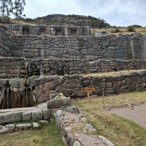 Na początku pojechaliśmy do Tambomachay. Uważa się, że miejsce to pełniło funkcję ośrodka kultu wody, związanej z płodnością ziemi. Woda do dziś spływa kanałami i fontannami. Nazywane jest czasem „Łaźniami Inków”, choć nie ma dowodów, że było używane do kąpieli. Raczej stanowiło miejsce odpoczynku dla wysoko postawionych dostojników inkaskich, a także związane było z obrzędami wody i płodności.