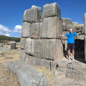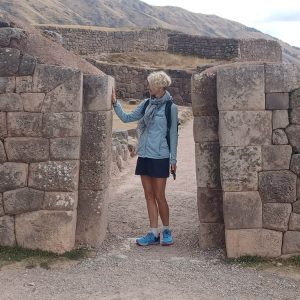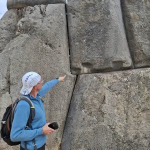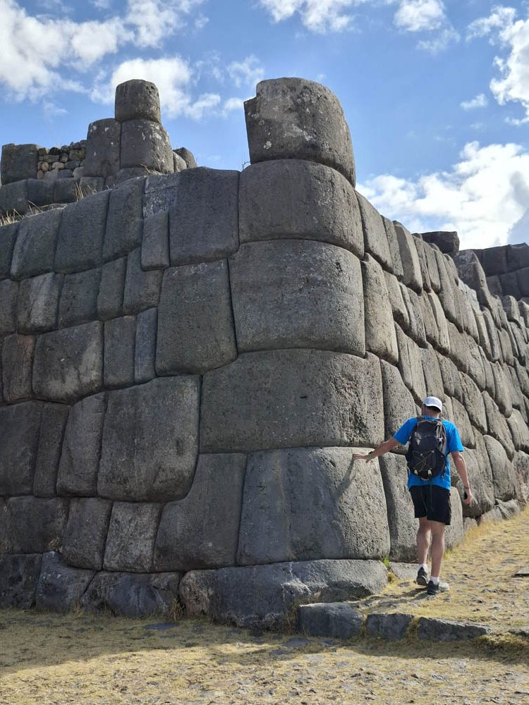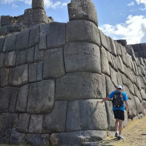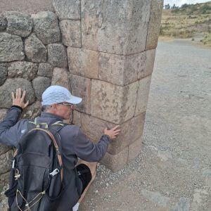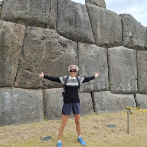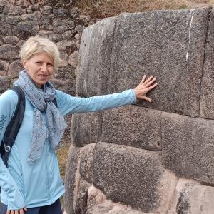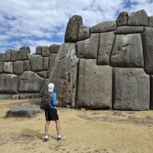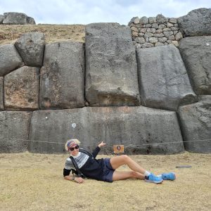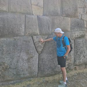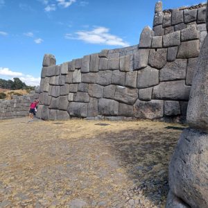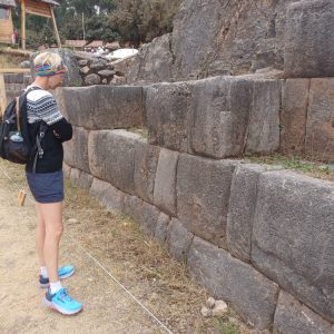 Trudno opisać słowami to miejsce. Prawdopodobnie była to olbrzymia twierdza. Mury zbudowane na kilku poziomach, w kształcie zygzaka, z wielotonowych głazów. Wszystko idealnie do siebie dopasowane, głazy wielokątne, ułożone jeden na drugim bez zaprawy, bez szczelin. Dawało to doskonałe wzmocnienie na wypadek trzęsień ziemi, których w Peru odnotowuje się nawet około 200 rocznie. Majstersztyk i zagadka, jak je transportowali i tak precyzyjnie układali. Naprzeciwko twierdzy było drugie wzgórze, także skaliste, które wyglądało jak wielka wyrzeźbiona kopułą. Dzieciaki zjeżdżały na niej jak na ślizgawce. Na jej szczycie była idealnie gładka konstrukcja, niczym wylana z betonu. Tabliczka mówiła, że to „tron Inki”. Obok były też dwa inne intrygujące głazy, jakby przewrócone do góry nogami, z wyrzeźbionymi schodami. Trwały tam dalsze prace archeologiczne. Pamiętam, że jako dziecko chciałam być archeologiem, interesowały mnie też dinozaury. Kto wie, gdybym wtedy poszła za tym głosem, kim byłabym dzisiaj… W Sacsayhuamán spędziliśmy ze 3h. Powoli chodziliśmy, dotykaliśmy skał zastanawiając się „jak” i „kiedy” tak naprawdę to powstało? Fantastyczna przygoda móc na własne oczy zobaczyć i dotknąć tego, co do tej pory tylko oglądaliśmy w tv. Spotkaliśmy tam chłopaka z Bułgarii, który także podróżował z grupą i tak jak my oddzielił się od ekipy, by móc kontemplować to miejsce po swojemu, zadając pytania i nikogo nimi nie drażnić. Bez dwóch zdań Sacsayhuamán to jedno z najciekawszych i najbardziej zagadkowych miejsc, jakie odwiedziliśmy.