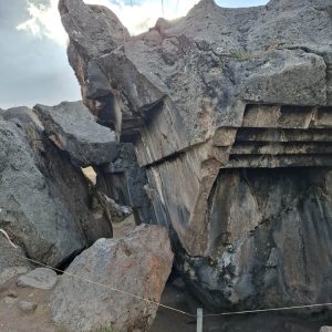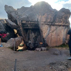 Zwiedziliśmy też Qengo, w języku keczua oznacza „labirynt”. Nazwa odnosi się do charakterystycznych, podziemnych galerii i kanałów skalnych ułożonych w zygzakowate formy. W labiryncie były olbrzymie wyprofilowane, wypolerowane gładkie powierzchnie, niczym ołtarze. Badacze mówią, że było to miejsce ceremonialne, związane z rytuałami religijnymi, ofiarami (np. zwierzętami), oraz z obserwacjami astronomicznymi. Zajechaliśmy na punkt widokowy, z pomnikiem Chrystusa i panoramą Cusco.