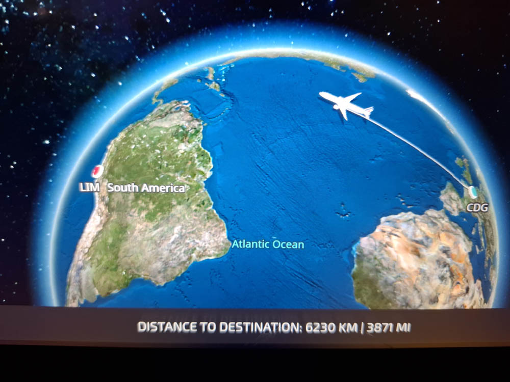 Lot z Paryża do Limy zajął nam ok 12h. Niedługo po starcie obsługa zaserwowała obiad, po czym poprosili o zasunięcie okienek i jak dzieciom w przedszkolu kazali iść spać 😉