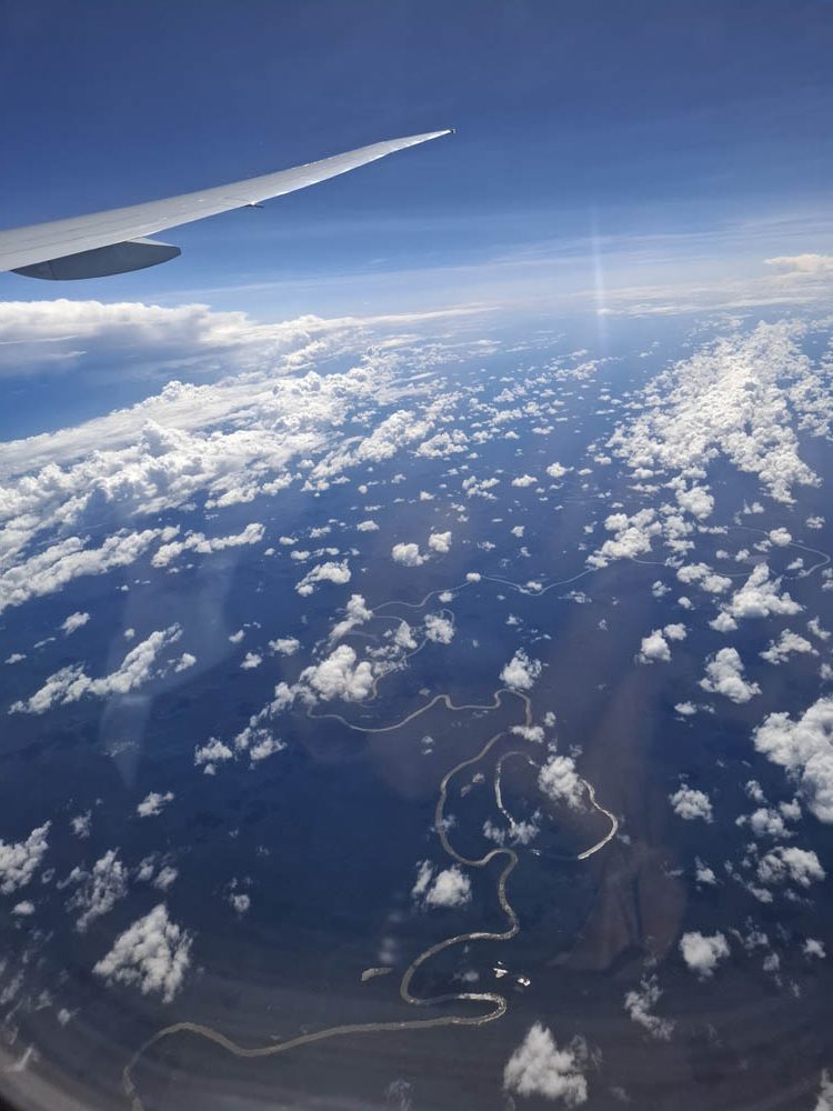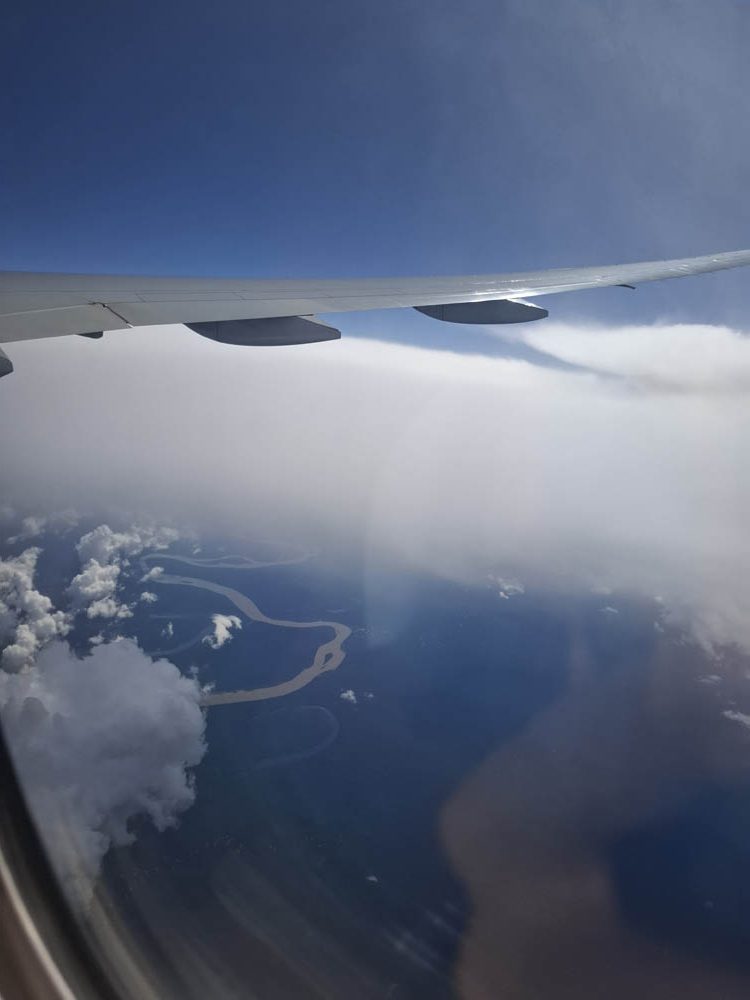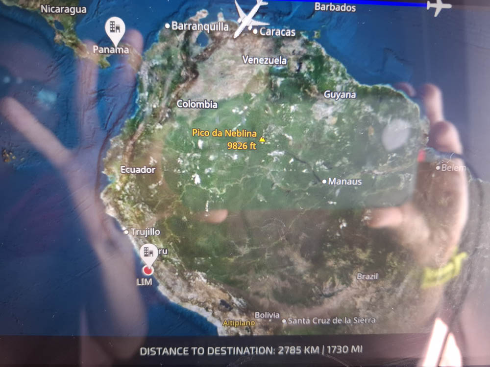 Większość lotu to przelot przez Atlantyk, więc nie było nic specjalnego za oknem. Ciekawie zrobiło się, gdy wlecieliśmy nad Amerykę Południową, najpierw Wenezuela, potem Kolumbia i Peru. Siedziałam z nosem przyklejonym do szyby. Pod nami olbrzymia dżungla amazońska i mnóstwo jej dopływów. Rzeki wiły się niesamowicie, niektóre odcinki były odcięte od głównego nurtu. Nie mogłam przestać robić zdjęć. Na koniec pasmo gór i wybrzeże, nad którym leży Lima.