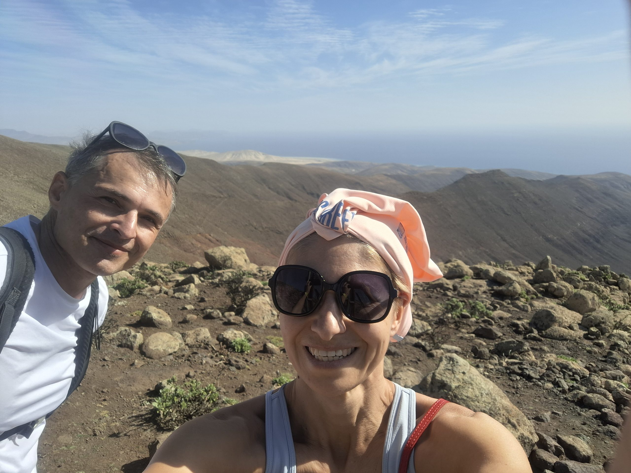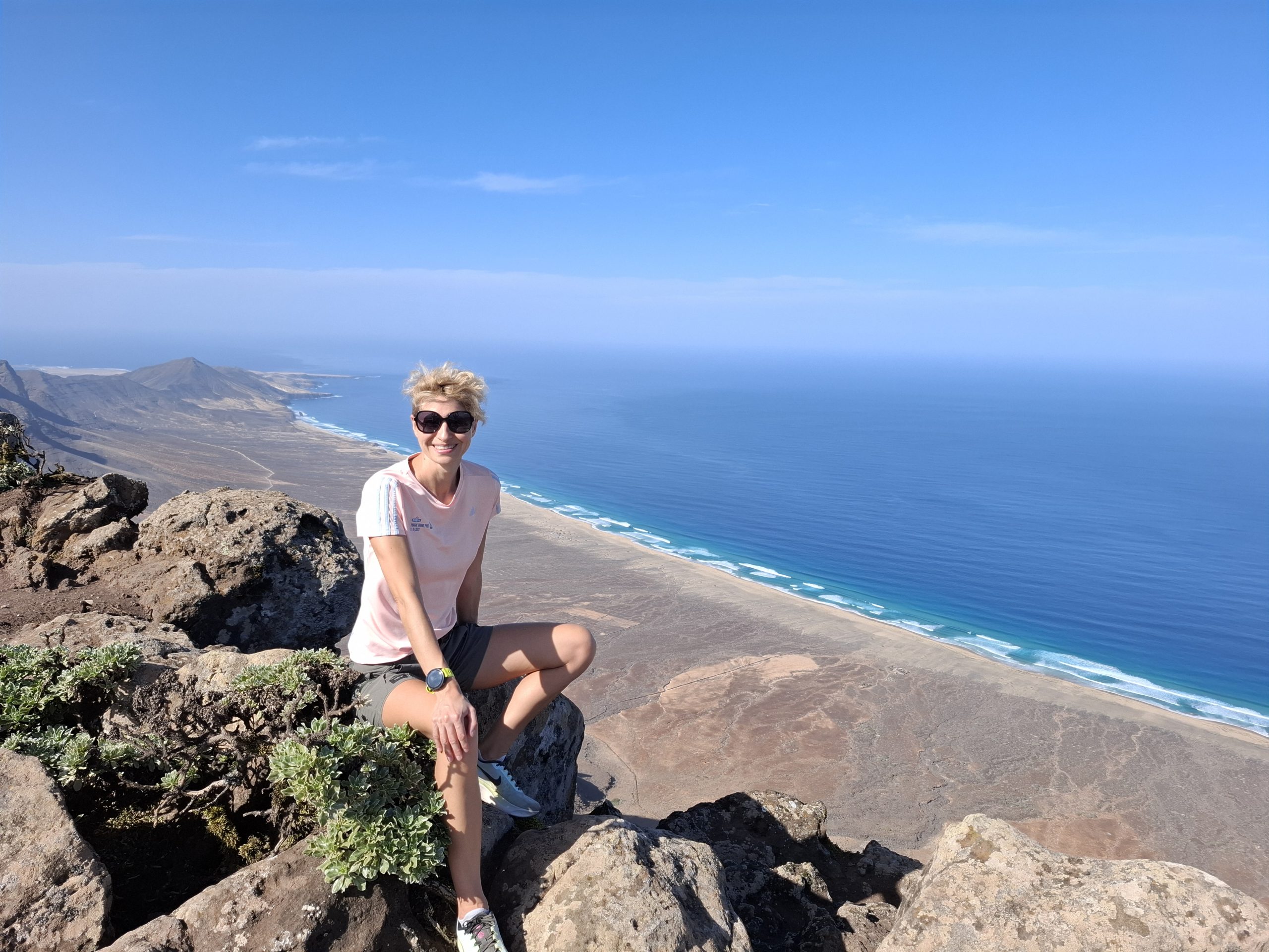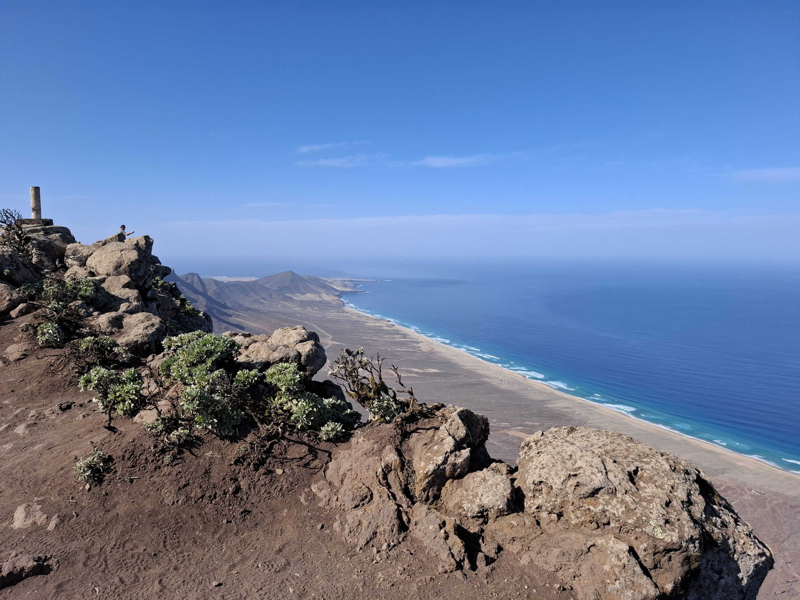 Widoki po drodze super, ze szczytu obłędne. W dole była plaża Cofete, na której dzień wcześniej leżeliśmy. Porobiliśmy znowu mnóstwo zdjęć i ruszyliśmy w dół. Po 1:25 byliśmy przy aucie. Po drodze mijaliśmy całkiem sporo osób, które wbiegało/ zbiegało. Super szlak na półdniową wycieczkę.