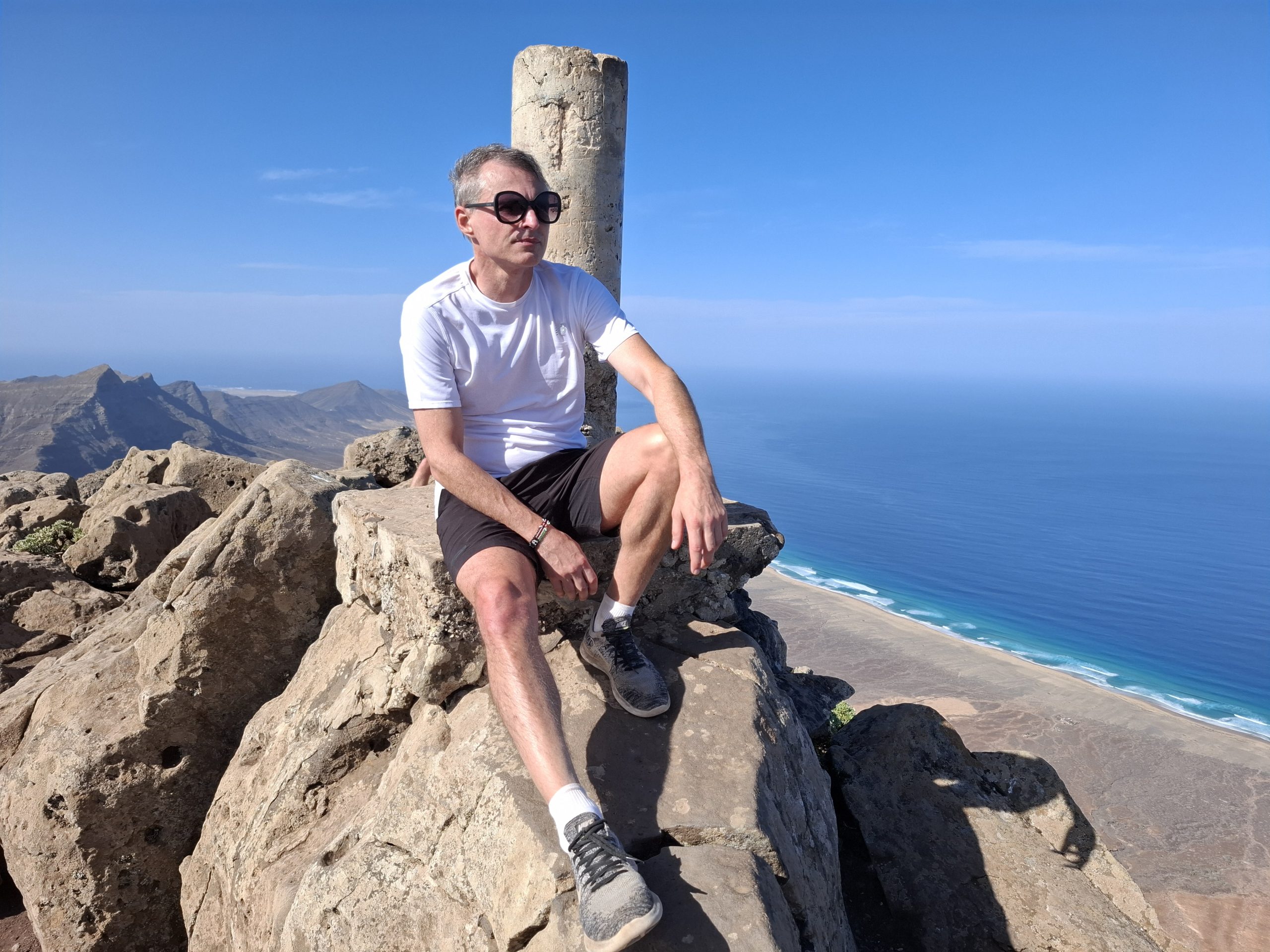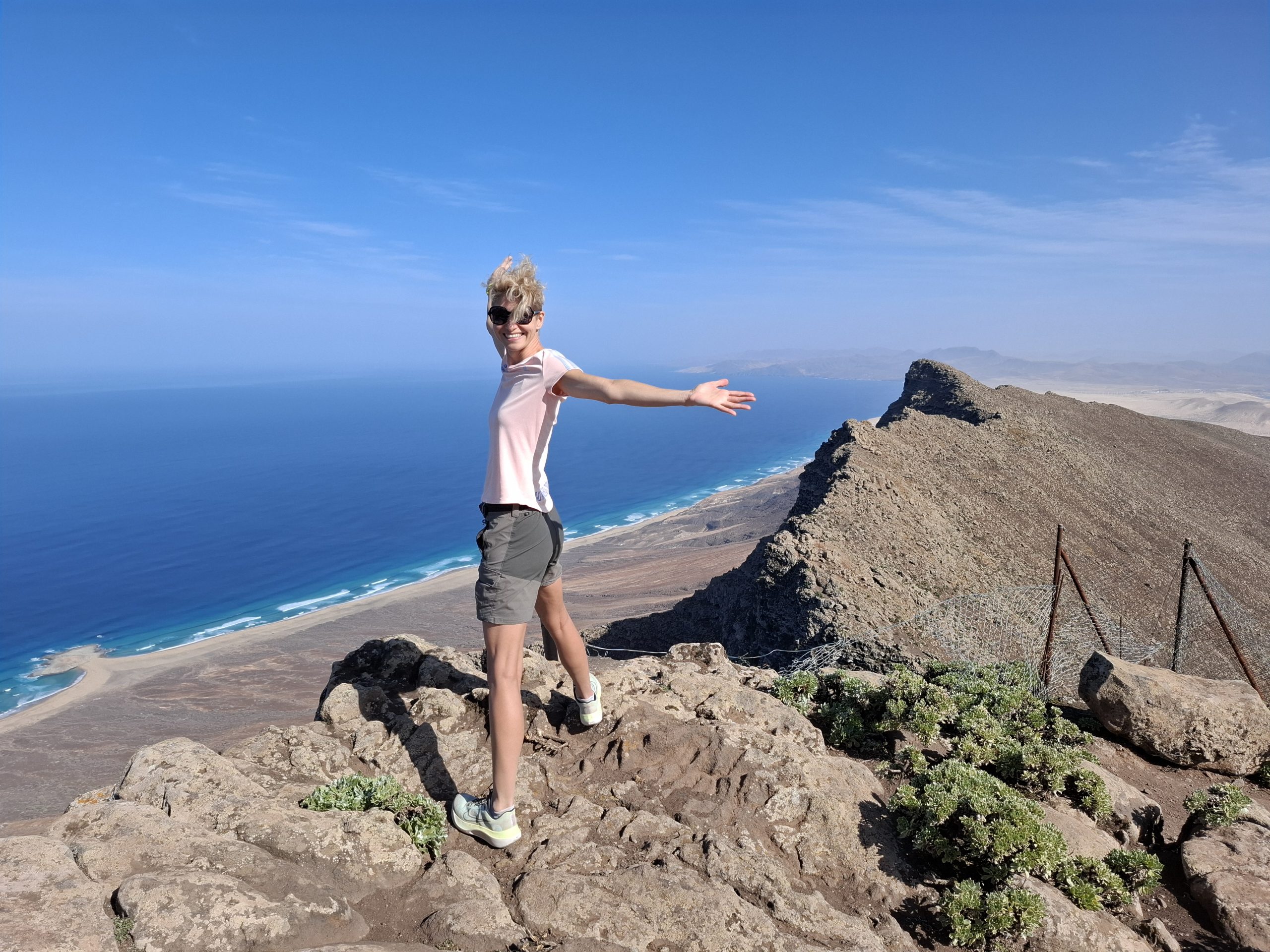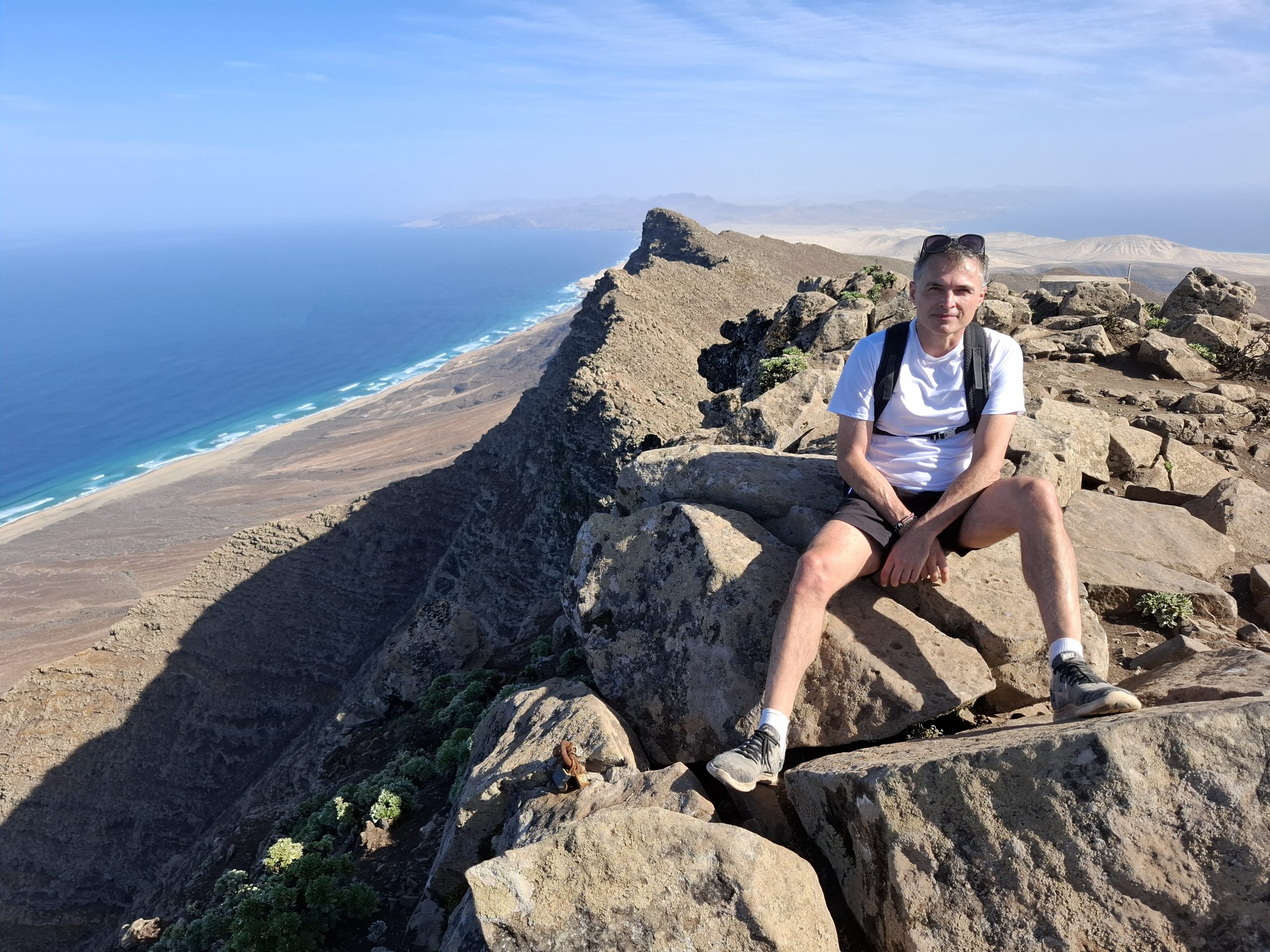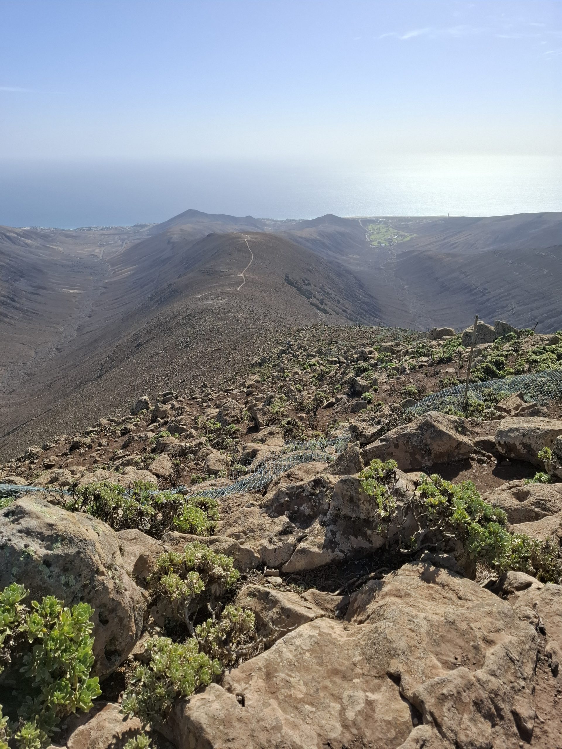 Widoki po drodze super, ze szczytu obłędne. W dole była plaża Cofete, na której dzień wcześniej leżeliśmy. Porobiliśmy znowu mnóstwo zdjęć i ruszyliśmy w dół. Po 1:25 byliśmy przy aucie. Po drodze mijaliśmy całkiem sporo osób, które wbiegało/ zbiegało. Super szlak na półdniową wycieczkę.
