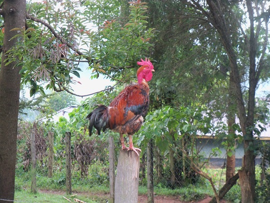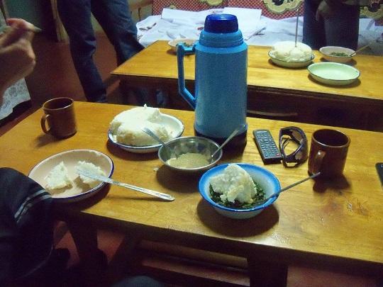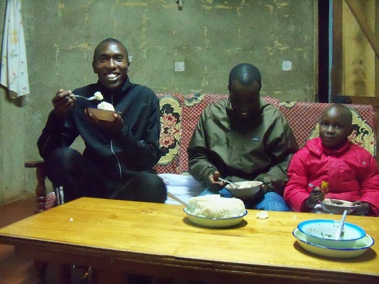 Na kolację było ugali i sukuma, duszone zielone warzywa z pomidorami. Bardzo proste i smaczne. Do tego herbata z termosu. Długo siedzieliśmy rozmawiając. Nagle wysiadł prąd, zrobiło się ciemno i cicho. Znowu poczuliśmy prawdziwą Afrykę. Ciszę zagłuszały jedynie cykady. Teraz wreszcie po dwóch tygodniach się wyśpimy. Czar prysł o trzeciej nad ranem. Przeraźliwe pianie koguta uświadomiło nam, że jesteśmy na wsi. Pierwsza myśl: trzeba go zabić. Kogut dawał o sobie znać wielokrotnie, aż do rana. Umówiliśmy się z gospodarzem, że jak przyjedziemy tu następnym razem, to dostaniemy go na obiad.