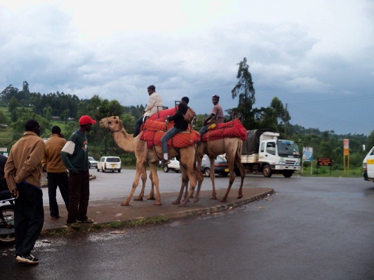 W Kapsabet lało. Okazało się, że nasz znajomy mieszka jeszcze 5 km od centrum. Poczekaliśmy, aż ulewa przejdzie i motorem podjechaliśmy na miejsce, z którego miał nas odebrać. Czekając na niego widzieliśmy mini karawanę, trzy wielbłądy, na ich grzbietach jechali ludzie.