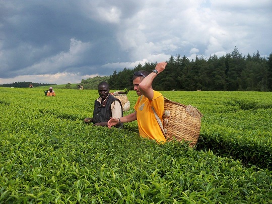 Zaczepiłam jednego z robotników i poprosiłam o lekcję zbierania liści herbaty. Śmiał się, gdy chciałam zarzucić na plecy jego kosz, by faktycznie poczuć jak to jest. Ten był jeszcze pusty i lekki, kosz, który założył yacool był prawie pełen, podobno ważą wtedy około 10 kg. Charlie wytłumaczył mi, które listki powinnam zbierać, uszkodzone odrywać i wyrzucać. Na tej plantacji pracowało 200 osób. Po chwili zjawił się supervisor ze swoim asystentem z dość nieufną miną. Grzecznie się przywitaliśmy i wyjaśniliśmy co tu robimy, nie chciałam, by wspomniany Charles miał przez nas kłopoty. Przypomniało mi to trochę czasy niewolników i pracę na plantacjach, yacoolowi przypomniały się czasy studiów i pracy w Anglii. Nadzorcy poprosili nas o wspólne zdjęcie, podali też adres do wysyłki. Obiecaliśmy, że to zrobimy po powrocie do Polski. Maila nie mieli.
