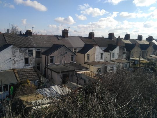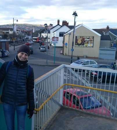 Po około 20 minutach jazdy byliśmy na miejscu. Omal nie przeoczyliśmy stacji, bo o ile stacje w Cardiff były zapowiadane, o tyle nasza, nie centralna – nie. Wysiedliśmy, jak to Janek słusznie zauważył na totalnym zadupiu. Dobrze, że mam w komórce google maps, bo nawet nie byłoby kogo zapytać o drogę. Nawigacja pokierowała nas jakimiś peryferiami. Na tyłach brzydkich domków szeregowych mieściły się podejrzanie wyglądające warsztaty samochodowe. Pod jednym z nich ludzie rozpalili ogień w dużym metalowym zbiorniku i się przy nim grzali. Pod płotem walały się śmieci. Straszny syf. Przypomniały mi się ulice w Nairobi.