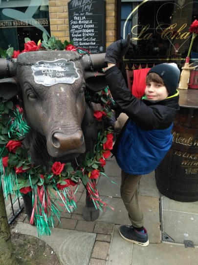 Po półgodzinnym spacerze minęliśmy kryte lodowisko. Tuż obok niego był basen. Kupiliśmy bilety (ok 8 £ za nas dwoje), które były bez limitu czasu, mogliśmy więc siedzieć w wodzie do woli. Niestety okazało się, że woda w basenie była zimna. A przynajmniej nie tak ciepła jak liczyliśmy. Było kilka zjeżdżalni, ale nieczynnych, coś a la jaccuzi tylko, że bąbelki słabo podgrzewane. W zasadzie temperatura w nim nie była wcale wyższa niż w basenie normalnym, a wręcz miałam wrażenie, że jest zimniejsza. Zamiast więc relaksu w ciepłej wodzie wyszła nam godzina mocnego pływania, by się rozgrzać. Robiliśmy sobie z Jankiem zawody, kto pierwszy dopłynie do bandy. Za każdym razem młody wygrywał!