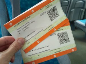 Ostatecznie nie zdążyliśmy kupić biletów, bo przyjechał pociąg. Sprzedał nam je konduktor. Cena była ta sama co w kasie. Od razu kupiliśmy od niego bilet na powrót bez podawania godziny (10.8£ za nas oboje).
