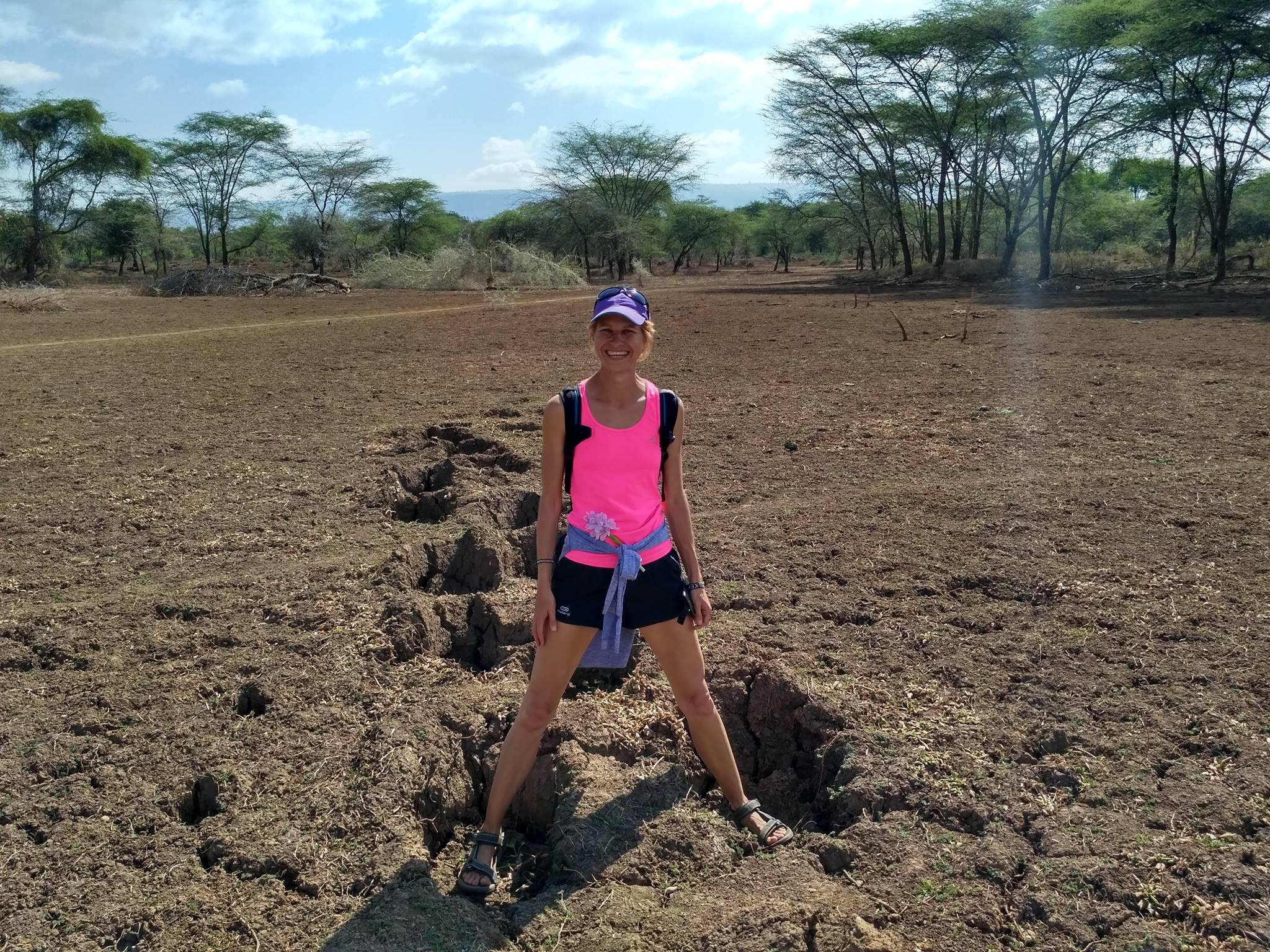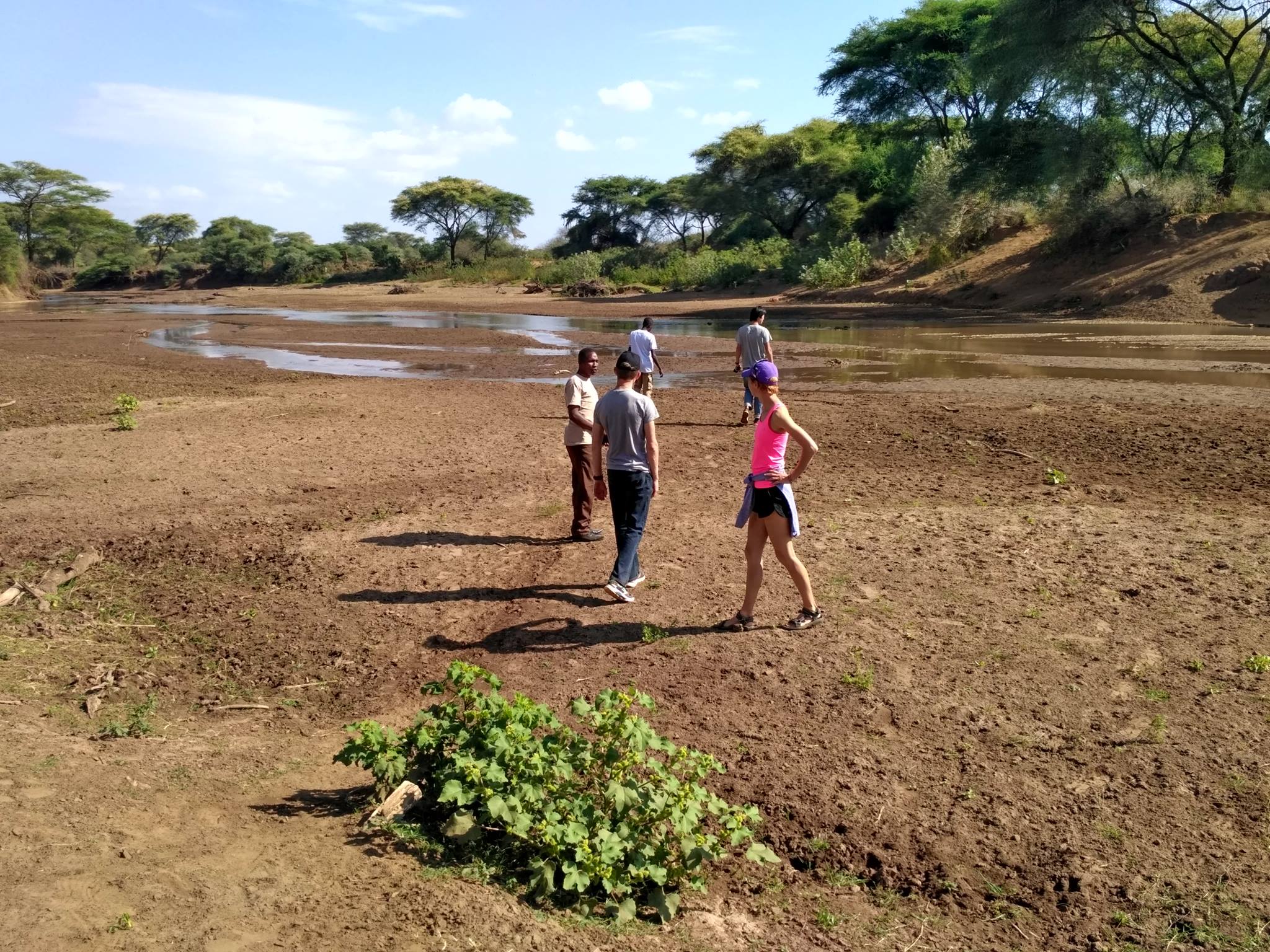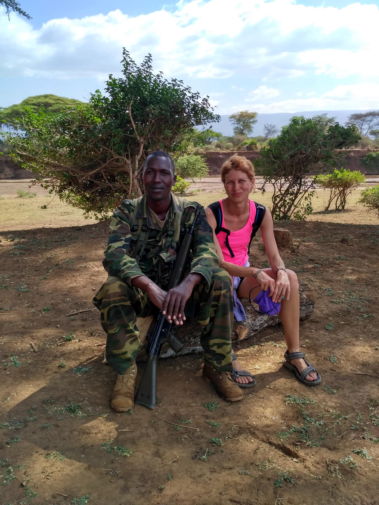Rzeka Kerio stanowi naturalną granicę parku. Po jej drugiej stronie znajduje się dawny Rezerwat Jeziora Kamnarok. Kiedyś w jeziorze tym żyła druga pod względem liczebności populacja krokodyli. Niestety w ciągu kilku lat suszy jezioro znacznie się zmniejszyło i wiele zwierząt zdechło. Władze regionu nie dbają o odbudowę tego środowiska, zwierzęta przeniesiono do parku Romoi, a na tym terenie pozwolono osiedlić się ludziom. Nasz przewodnik zorganizował nam strażnika, z wielką bronią u boku, w którego asyście przeprawiliśmy się przez rzekę w kierunku Jeziora Kamnarok. Teren, przez który szliśmy był całkowicie wyschnięty. Ziemia popękana. Gdzieniegdzie przemykały dzieci z małymi stadkami kóz, owiec i krów. Idąc widzieliśmy ślady słoni, odbite na piachu oraz odciśnięte w ziemi bliżej jeziora. Widać w porze deszczowej było tu błotniście i ich ciężkie cielska zapadały się w ziemi. Dowodem były wielkie dziury w ziemi, o średnicy przynajmniej 50-70 cm. Bliżej jeziora teren był bardziej zielony i błotnisty. Na jego brzegu rosły jasno fioletowe kwiaty, podobne do hiacyntów. To im jezioro zawdzięcza swoją nazwę. Podeszłam bliżej, by powąchać jednego kwiatka, ale teren był bardzo grząski, a guide powiedział bym uważała, bo w szuwarach są krokodyle.