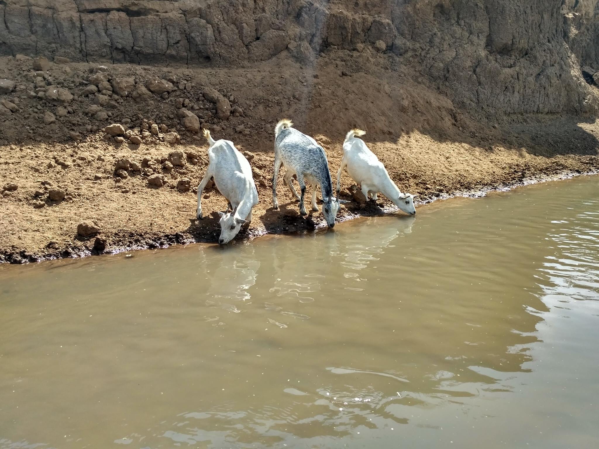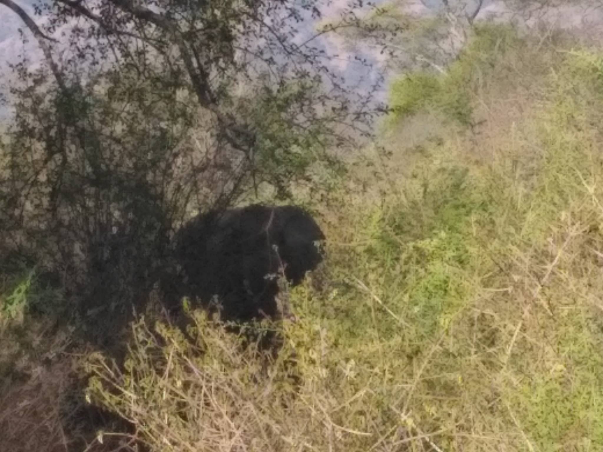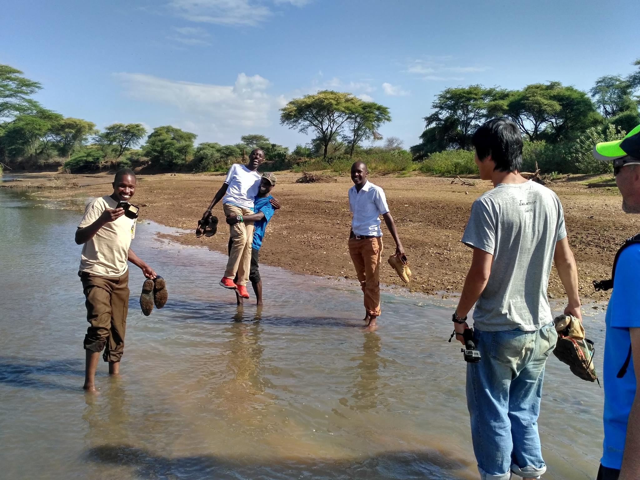 Rzeka Kerio stanowi naturalną granicę parku. Po jej drugiej stronie znajduje się dawny Rezerwat Jeziora Kamnarok. Kiedyś w jeziorze tym żyła druga pod względem liczebności populacja krokodyli. Niestety w ciągu kilku lat suszy jezioro znacznie się zmniejszyło i wiele zwierząt zdechło. Władze regionu nie dbają o odbudowę tego środowiska, zwierzęta przeniesiono do parku Romoi, a na tym terenie pozwolono osiedlić się ludziom. Nasz przewodnik zorganizował nam strażnika, z wielką bronią u boku, w którego asyście przeprawiliśmy się przez rzekę w kierunku Jeziora Kamnarok. Teren, przez który szliśmy był całkowicie wyschnięty. Ziemia popękana. Gdzieniegdzie przemykały dzieci z małymi stadkami kóz, owiec i krów. Idąc widzieliśmy ślady słoni, odbite na piachu oraz odciśnięte w ziemi bliżej jeziora. Widać w porze deszczowej było tu błotniście i ich ciężkie cielska zapadały się w ziemi. Dowodem były wielkie dziury w ziemi, o średnicy przynajmniej 50-70 cm. Bliżej jeziora teren był bardziej zielony i błotnisty. Na jego brzegu rosły jasno fioletowe kwiaty, podobne do hiacyntów. To im jezioro zawdzięcza swoją nazwę. Podeszłam bliżej, by powąchać jednego kwiatka, ale teren był bardzo grząski, a guide powiedział bym uważała, bo w szuwarach są krokodyle.