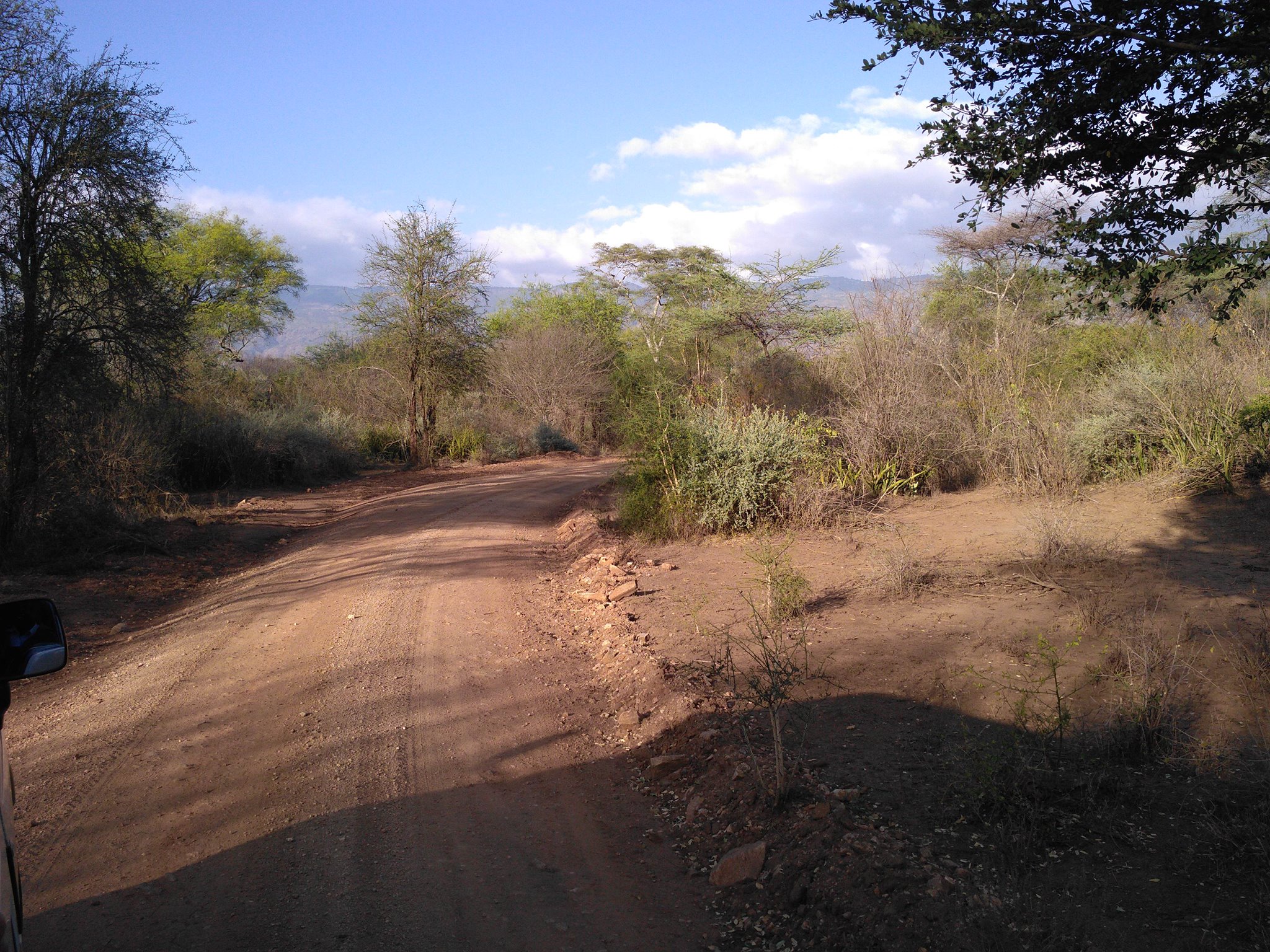 Zgodnie z wczorajszą umową matatu podjechało pod nasz hotel punktualnie o 5:30. Dziś podróżowaliśmy w komfortowych warunkach. Sześć osób w matatu 8 osobowym. Gdy ruszaliśmy było jeszcze ciemno i pusto na drogach. Krętą serpentyną zjeżdżaliśmy na sam dół Wielkiego Rowu Afrykańskiego. Po około 40 minutach jazdy zjechaliśmy z głównej asfaltowej drogi na drogę szutrową. Zaczęło mocno nami potrząsać na wybojach, prędkość jazdy też znacznie spadła. Wczoraj kierowca mówił, że czeka nas około 2h jazdy taką drogą. Errol stwierdził, że następnym razem trzeba wynająć auto z napędem 4×4. Pewnie, tylko wszystko to kwestia kasy. Niespodziewanie po około 40 minutach pojawiła się tablica z drogowskazem do Rimoi National Park, wskazująca odległość 2,5 km. Odetchnęliśmy z ulgą.