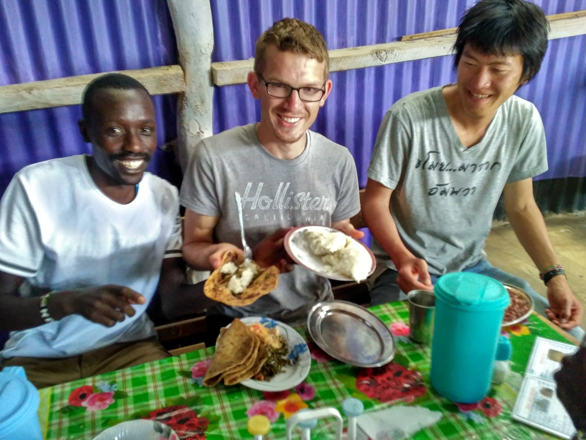 Zbliżała się 11, upał był naprawdę spory. Zakończyliśmy nasze safari. Wszyscy byliśmy bardzo głodni. Po drodze była tylko jedna większa wioska. Zatrzymaliśmy się, by coś zjeść. Mimo, że było nas siedmioro w ciągu dosłownie dwóch minut od złożenia zamówienia wszyscy mieliśmy przed sobą talerze, z chapati, ugali, kapustą, fasolą, sukumą i porcjami mięsa. Proste jedzenie, a niezwykle smaczne. Za 11 usd wszyscy najedliśmy się naprawdę do syta.