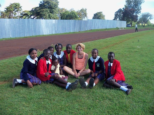 Wróciłam na Kamariny. Na stadionie było stadko owiec i yacool z chłopakami. Czekali na mnie i na jeszcze jednego biegacza. Yacool im dziś zapodał koordynacyjne układy. Coraz lepiej je łapią, nie musiałam dziś być wzorcem, więc sobie z boku siadłam i po prostu chłonęłam tę atmosferę. Przyjechał autobus z dzieciakami z Eldoret. Chłopcy grali w piłkę, a dziewczyny przysiadły się do mnie i zaczęły zadawać mnóstwo pytań, jak jest w Polsce czy mam męża i dzieci, czemu tylko jedno, to są ich standardowe pytania, gdzie pracuję, jak mi się podoba Kenia, jak wygląda śnieg? Kilka z nich marzy o wyjeździe do Europy, jedna wymyśliła sobie, by jechać do Norwegii, ale jak jej powiedziałam, że tam jest zimno, to zmieniła destynację na Hiszpanię.