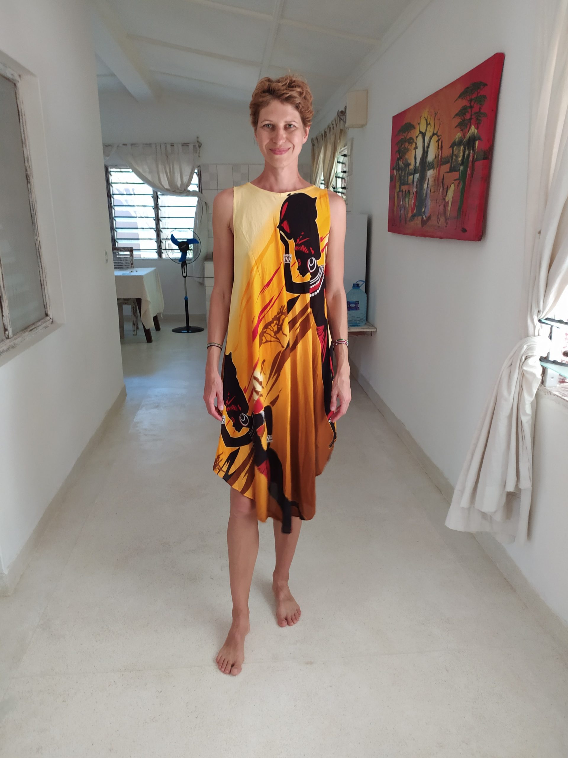 Janek odebrał zamówiony dla siebie wcześniej obraz skaczących Masajów. Obrazy to główne atrakcje, które lokalsi hurtowo malują tu. Wszystkie w zasadzie według jednej sztampy. Tak samo jak szyte po ciemku sukienki z kolorowych chust. Tych kupiłam sobie cztery, bo nie mogłam się zdecydować, w którym kolorze mi najlepiej. To także pierwsze niesportowe ciuchy od wielu lat. Liczę teraz na ciepłe i długie lato w Polsce, bym mogła je ponosić.