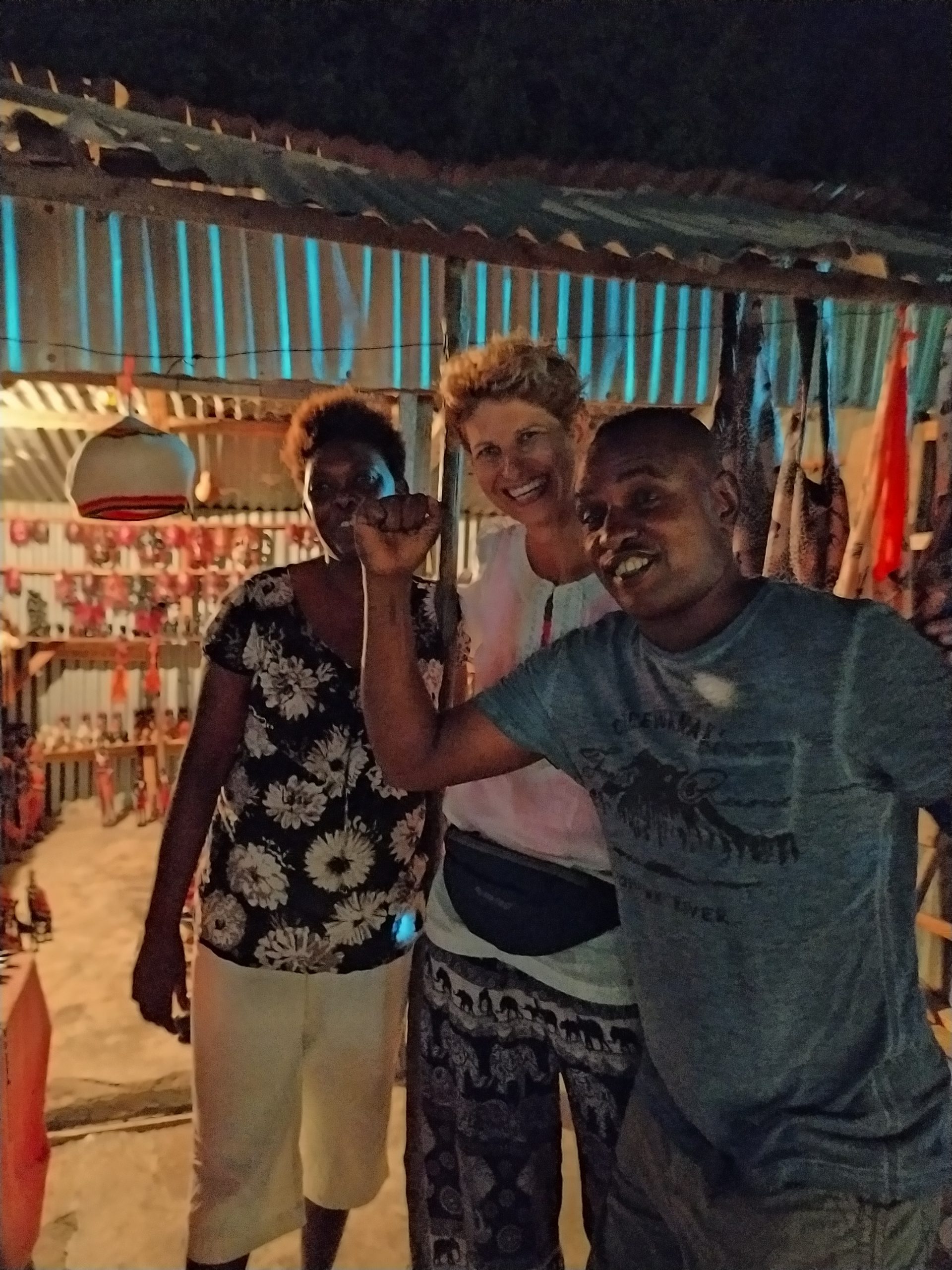 Wczoraj ostatnie chwile w Watamu spędziliśmy na plaży. Poprzedniego wieczoru przeszliśmy się na pożegnanie po głównej uliczce ze sklepikami. Sprzedawcy prosili byśmy przynajmniej zajrzeli do środka, a gdy to już zrobiliśmy to nie chcieli nas wypuścić bez kupna choćby małego czegoś. Zaczepił nas jakiś chłopak, który twierdził że jest nauczycielem w tutejszej szkole. Prosił byśmy go wsparli kupując kredę, którą potrzebuje do przeprowadzenia lekcji. Kupiliśmy. Czy faktycznie był nauczycielem nie wiemy.