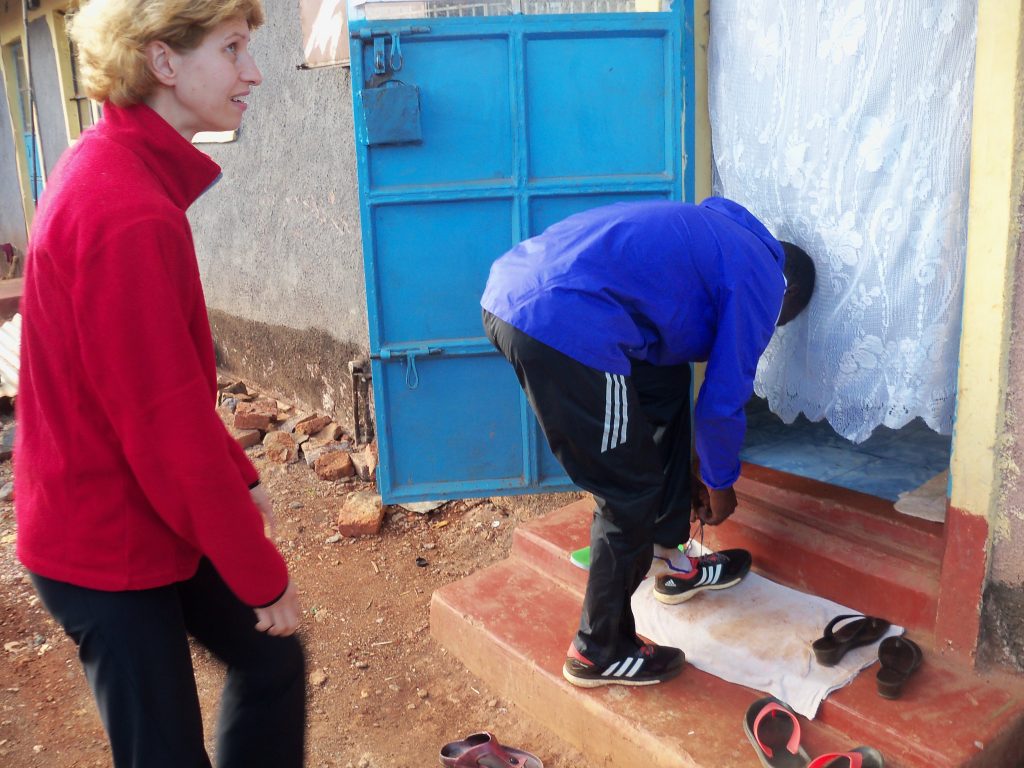 Jesteśmy w Iten. Bez trudu trafiliśmy do Keelu Resort – hotelu Wilsona. Zostawiliśmy bagaże w pokoju i poszliśmy na spacer. Spacerując po Iten wpadliśmy na jednego z naszych biegających znajomych, Josphata Kiptisa, który wygrał w czerwcu półmaraton w Ołomuńcu i biega w RunCzech Team. Właśnie kończył swój trening. Zaprosił nas do swojego wynajmowanego mieszkania. Dwa pokoje z kuchnią i paleniskiem i prostą łazienką. Ale za cenę 60 USD miesięcznie. Podobno można też taniej, jeden pokój za 20 USD. On biega, je i śpi. Jego żona mu gotuje i sprząta.
