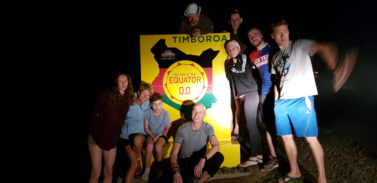 Zatrzymaliśmy się jeszcze w Nakuru na obiad. Byliśmy w połowie drogi. Każdy zamówił sobie coś kenijskiego, lokalnego. Ekipa najedzona i zadowolona. Po ciemku już, ale mimo wszystko zatrzymaliśmy się przy znaku oznaczającym przekroczenie równika. Szybka fotka i do domu. W Iten byliśmy ok 23. Alex czekał na nas z gorącą, gorzką herbatą. Pogadaliśmy chwilę i część poszła spać.