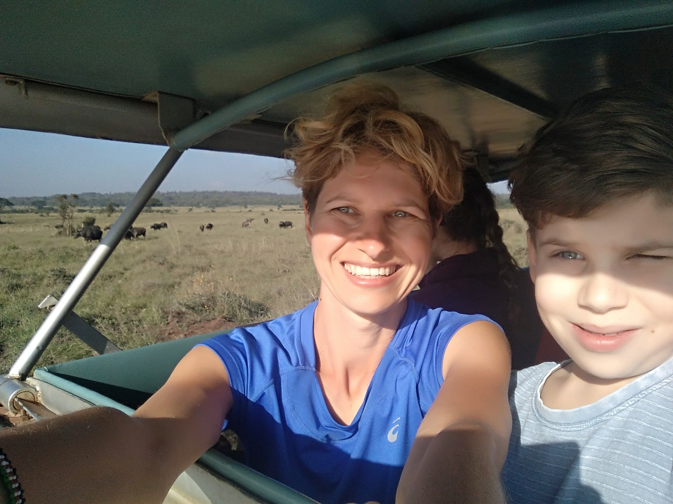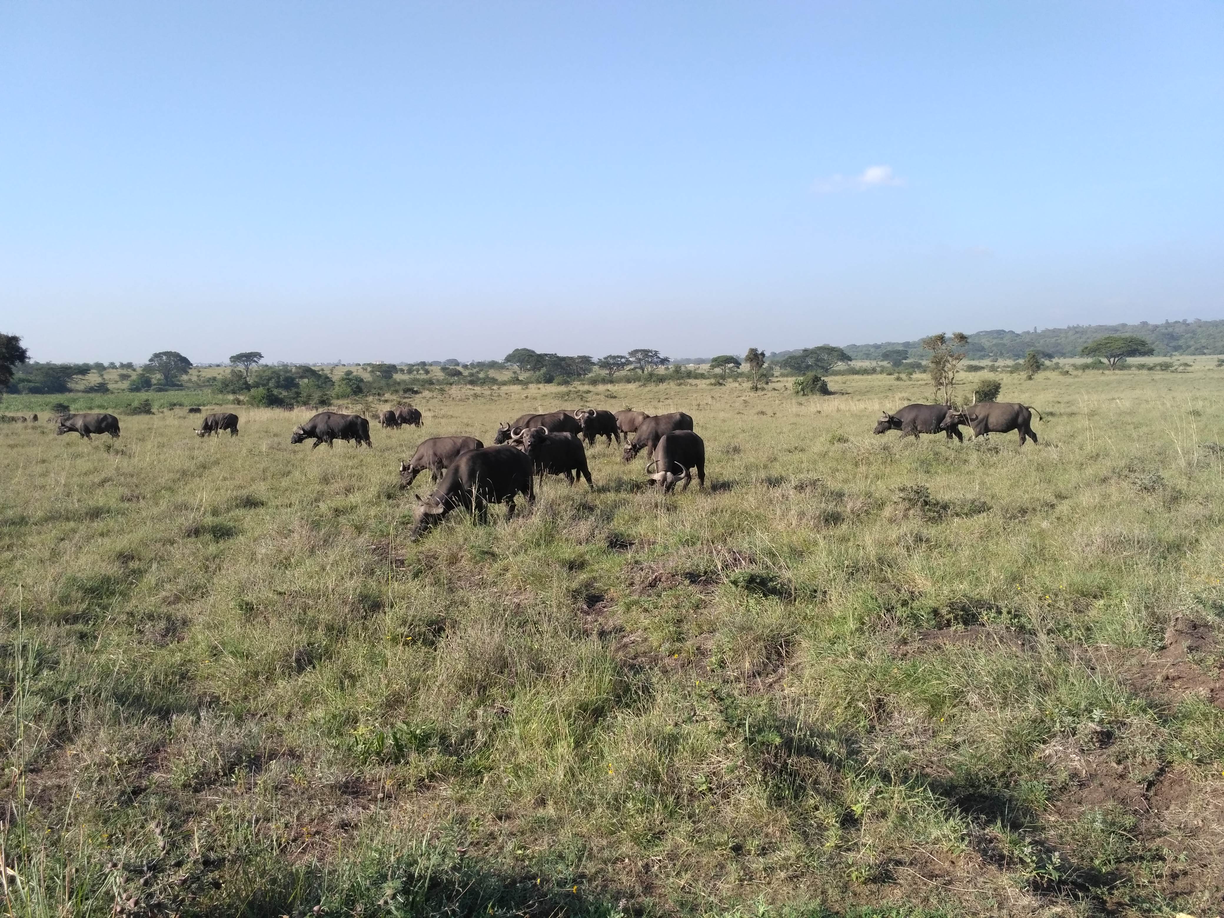 Pobudka o 5:30. Szybka herbata i o 6 był po nas Ken. Od rana chcieliśmy jechać na safari do Nairobi National Park. Safari bardzo się udało! Nasz kierowca kontaktował się z innymi przewodnikami, którzy byli na terenie parku i dzięki temu wiedział, gdzie podjechać, byśmy mogli zobaczyć jego największe atrakcje. Były lwy, leniwie patrzące na pasące się w pobliżu stado antylop, nosorożce, bawoły, żyrafy. Na brzegu sadzawki wygrzewał się krokodyl i przechadzały obrzydliwie brzydkie marabuty.