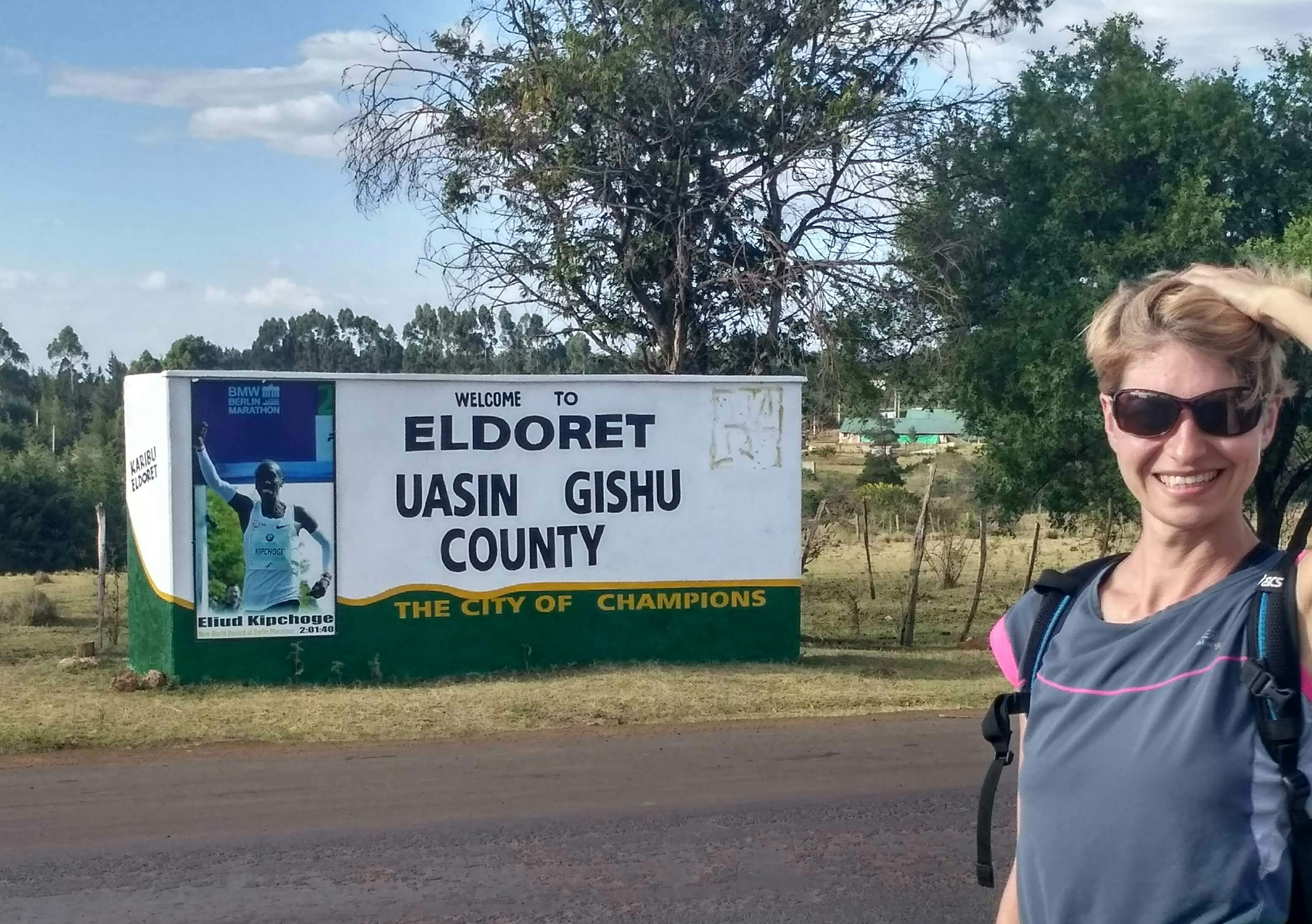 Na lotnisko w Eldoret pojechaliśmy matatu. Poszło całkiem sprawnie. Przed lotniskiem trafiliśmy na duży plakat z Kipchoge mówiący o jego rekordzie świata w maratonie. Wynik co prawda zawyżony o sekundę, ale wizytówka dla przylatujących tu jest. Na miejscu nie mogliśmy odnaleźć info o naszym locie na tablicy informacyjnej. Podeszłam do obsługi linii 540, pokazując bilet w komórce i spytałam, gdzie jest nasz lot. Okazało się, że został odwołany, a my przeniesieni na kolejny o 20:30. Faktycznie dostałam rano na maila bilet elektroniczny, ale ponieważ miałam wydrukowane bilety, to nawet się w niego nie wczytywałam. Błąd i nauczka na przyszłość. Zaczęliśmy się trochę denerwować czy i tego lotu nie odwołają i że grupa po przylocie będzie się stresować, że nas nie ma. Kamil z 7 kontynentów szybko powysyłał wszystkim smsy, uprzedzając o naszym spóźnieniu w nadziei, że po przylocie włączą komórki i odbiorą wiadomość. Ostatecznie byliśmy równo z nimi. Druga ekipa chłopaków z Gdańska miała być za pół godziny. Poszliśmy usiąść do knajpy na herbatę i poczekać na nich. Z Iten wieźliśmy dla nich chapati i mandazi. Bardzo im smakowało. Gdańsk doleciał i wspólnie z Kenem, naszym przewodnikiem po Nairobi, pojechaliśmy na nocleg. Wypiliśmy jeszcze po harbacie i poszliśmy spać. Wszyscy byli zmęczeni po podróży.
