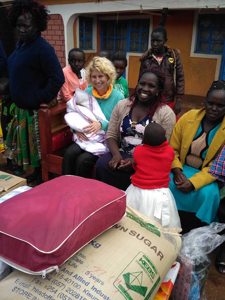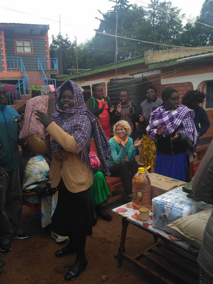 Ostatnim na naszej liście znajomych do odwiedzenia był Reuben. Biegający policjant, znajomy z czeskich biegów. Bardzo pozytywny i wesoły chłopak. Rok temu zmagał się z kontuzją, teraz po długiej pauzie podobno wznowił treningi. Weszliśmy na jego podwórko, a tam gwar, poruszenie i mnóstwo ludzi, głównie kobiet. Okazało się, że Reubenowi urodziła się druga córka i dziś zjechała do nich rodzina żony, przyjaciele, by złożyć im gratulacje i życzenia. Szybko zostaliśmy wciągnięci do wspólnej zabawy, tańców i śpiewów. Wcześniej była krótka wspólną modlitwa, a po niej każdy miał się przedstawić i powiedzieć coś o sobie i od siebie gospodarzom. Trwało to chyba z godzinę, bo było nas około 40 osób. Ja od razu dostałam do trzymania nowo narodzoną dziewczynkę. Kobiety robiły nam zdjęcia. Dla nas wielką atrakcją było uczestniczenie w tym rodzinnym wydarzeniu, dla nich widok mzungu. Rodzina pochodziła z rejonu Marakwet, tam rzadko się widuje białych. Kobiety śpiewały tradycyjne pieśni, bujając się przy tym rytmicznie. W pewnym momencie zaczęły rozpakowywać przywiezione prezenty i tańcząc obdarowywać się nimi. Dziewczynki dostały kolorowe sukienki, maleństwo ciepły koc, Reuben nową kurtkę, nawet ja dostałam prezent! Kolorową tradycyjną chustę, leso. Jedna z kobiet przewiązała mnie nią tak jak robią to kobiety Kalenjin. Bardzo się ucieszyłam. Nawet yacool dostał prezent od jednego z mężczyzn, 200 ksh, czyli 2 usd. Było mi głupio, że nie mieliśmy żadnego prezentu. Odwiedzimy ich jeszcze z jakimś drobiazgiem. Albo czymś bardziej praktycznym. Bo rodzice zostali obdarowani wielkim workiem ryżu, cukru i butlą oleju. Dostali też kopertę. Pod wieczór goście zaczęli się żegnać. Przed nimi było jeszcze około 3h jazdy do domu. Zdziwiło mnie, że gośćmi były głównie kobiety, kilku mężczyzn robiło za kierowców. Siostry Gladys, żony Reubena zapraszały nas, byśmy ich odwiedzili. Region, w którym mieszkają jest położony jeszcze wyżej niż Iten i jest tam jeszcze zimniej nuż tu.