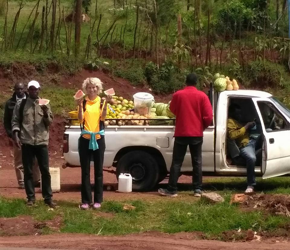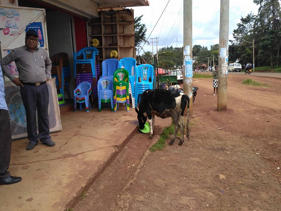 Po treningu chcieliśmy się przejść do miasta i odwiedzić paru znajomych. W sobotę jesteśmy zaproszeni na wesele kenijskiego kolegi. Poszliśmy do marketu prowadzonego przez Hindusów rozejrzeć się za jakimś prezentem. Przed sklepem stał cielak i pił wodę z talerza. Właściciel powiedział, że cielak wcześniej jadł z niego chleb. Nam też chciało się pić, kupiłam z Meshackiem po kawałku arbuza. Nie są tak dobre jak te kupowane w Polsce w sezonie. Meshack twierdzi, że to przez pogodę.