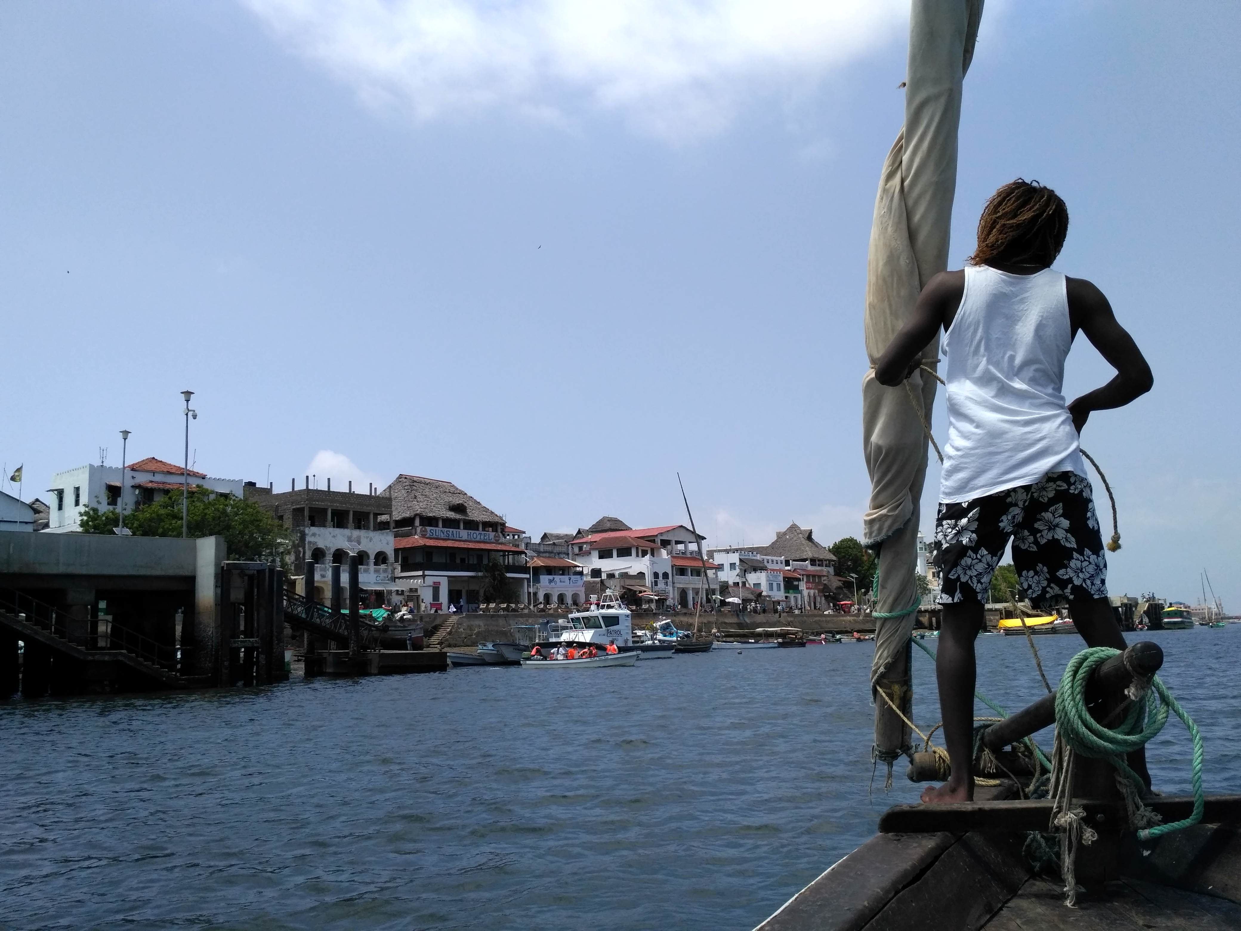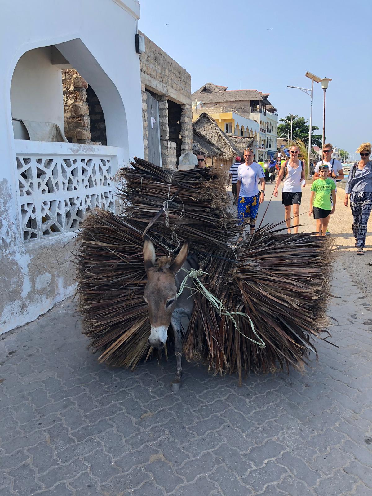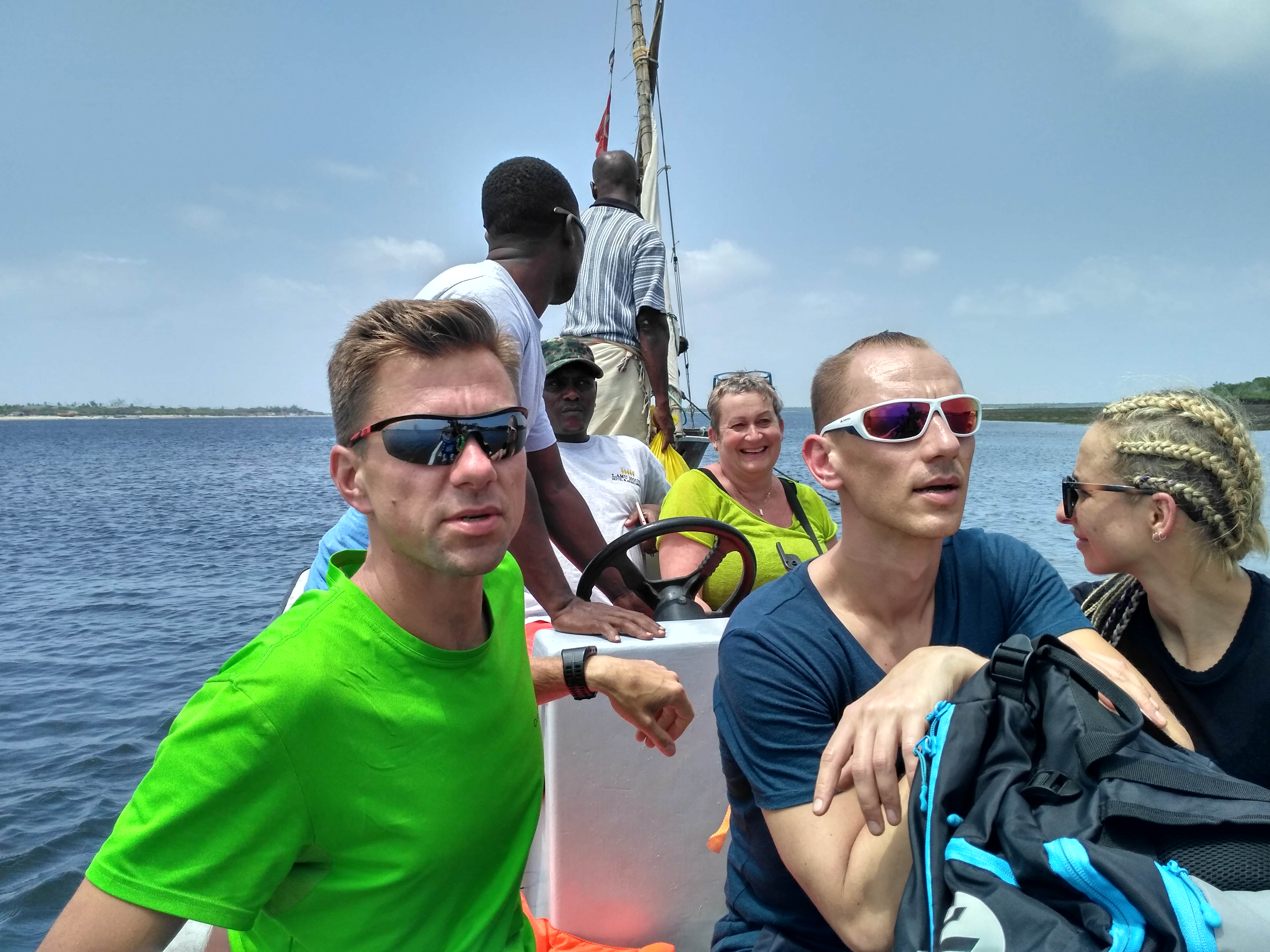 Na Lamu dolecieliśmy z międzylądowaniem w Mombasie. Na czas tankowania samolotu musieliśmy wyjść na lotnisko. Uderzył nas tropikalny afrykański żar. Po krótkiej przerwie wróciliśmy do samolotu i po 40 minutach lotu byliśmy na wyspie Manda. Tutaj było jeszcze goręcej. Na lotnisku czekali na nas dwaj Kenijczycy z tabliczką i nazwą naszego guesthousu. Razem poszliśmy na małą przystań skąd popłynęliśmy na Lamu. Wąską uliczką, uważając na przechadzające się osły doszliśmy do Jumbo Guesthouse. Przywitał nas Arnold, gospodarz. Rozpakowaliśmy się w naszych pokojach, wzięliśmy zimny prysznic i po wskazówkach Arnolda, gdzie i co warto zjeść poszliśmy na spacer. Lamu to zupełnie inny klimat, ludzie i obyczaje niż w Iten. W knajpce z widokiem na „promenadę” zjedliśmy obiad, zapiliśmy świeżym sokiem. Poprosiliśmy by przygotowali go bez dodawania cukru.