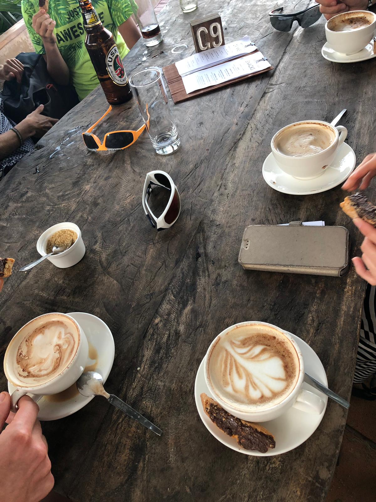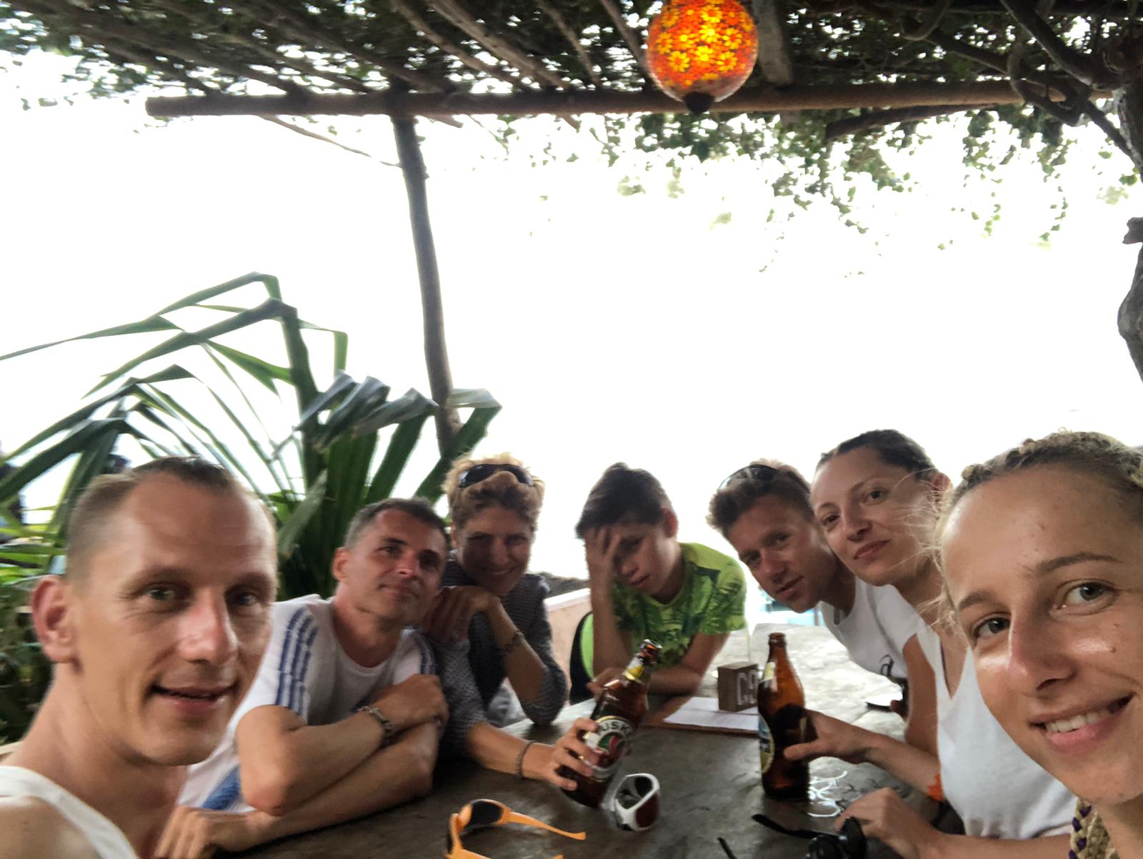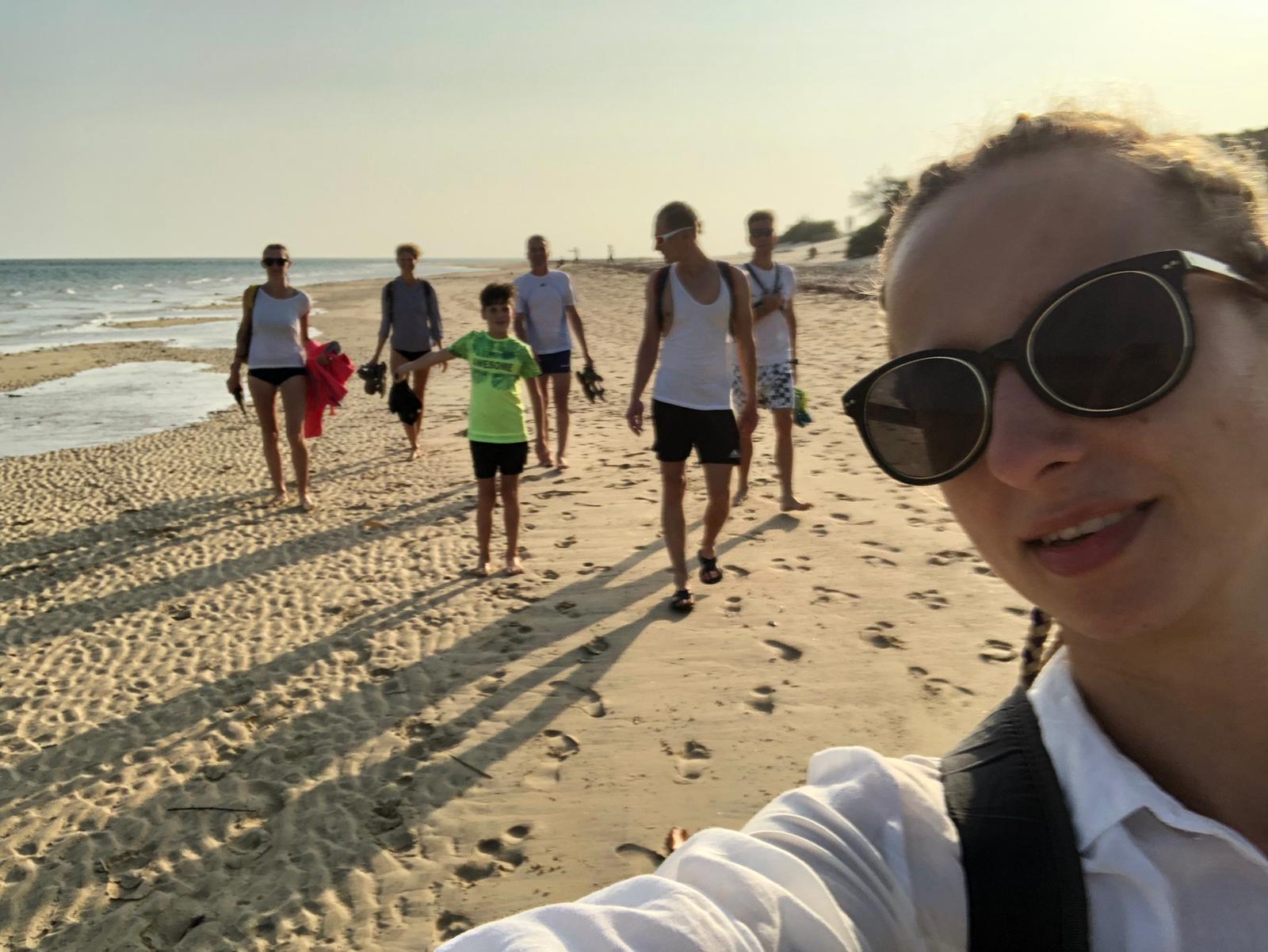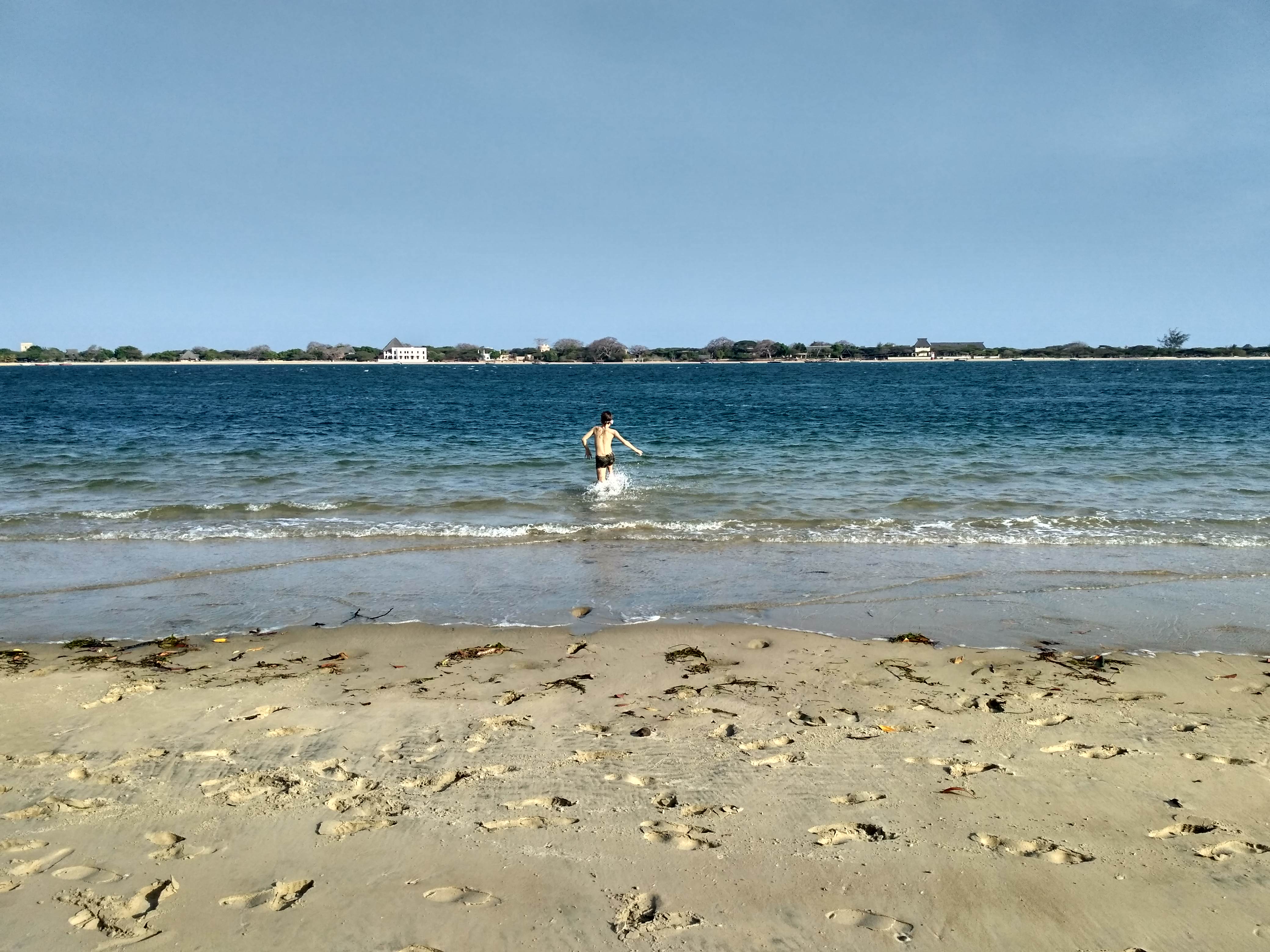 Później wsiedliśmy na motorówkę i popłynęliśmy do sąsiedniej wioski Shela. Słynie ona z pięknych plaż. Jest tu też dużo ładnych hoteli, przygotowanych pod europejskich turystów. Wskoczyliśmy do oceanu, woda cudownie ciepła i mega słona. Popływaliśmy trochę, schodziliśmy się i spacerem poszliśmy do wioski na kawę. Ekipa zamówiła po capuchino, ja miałam ochotę na piwo. Posiedzieliśmy tam do zachodu słońca. Później motorówką wróciliśmy do naszego miasteczka.