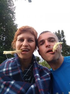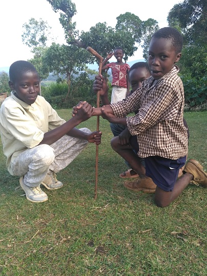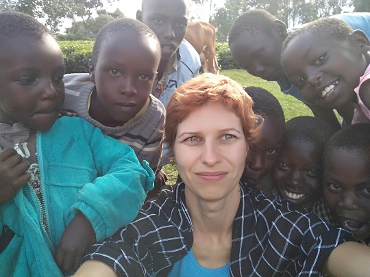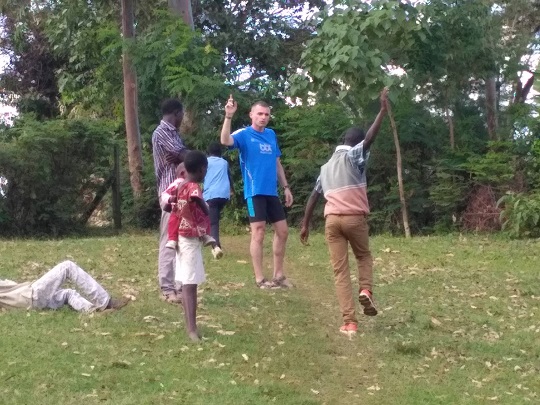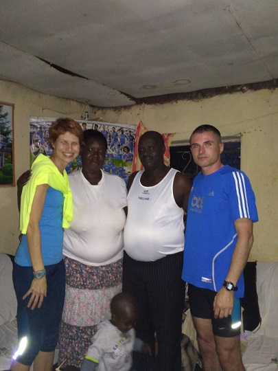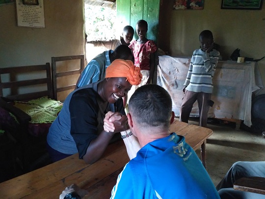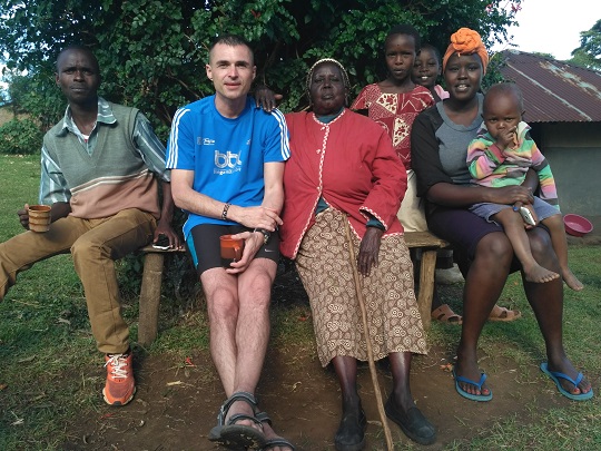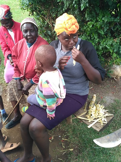 Potem pojechaliśmy do domu Cornela. Jego żona i córka czekały na nas z obiadem. Byli też bracia i siostra Cornela, którzy przyjechali na spotkanie rodzinne. Spotykają się razem co roku, by omówić ważne rodzinne kwestie. W spotkaniu mogą uczestniczyć tylko dorośli, po 40-stce. Taka rodzinna starszyzna. Obiad był bardzo smaczny, był makaron z groszkiem i marchewką, ryż, ziemniaki, gulasz wołowy i sałatka z pomidorów i papryczki chili. Po obiedzie Cornel poszedł z rodziną obradować, a jego córka Stacey zaprowadziła nas na wizytę do jej 100 letniej babci Teresy. Towarzyszyła nam gromadka jej wnucząt, które biegały między nami i miały ubaw z yacoolowych sztuczek. Kilku dzieciakom yacool zrobił koordynacyjny trening. Jeden chłopak, najstarszy, biega na poziomie 15 min na 5000 m. Yacool miał satysfakcję, bo dzieciaki łapały w mig sprężynkę. Potem były sesje zdjęciowe z babcią i dzieciakami. Siedzieliśmy z nimi do wieczora świetnie się bawiąc. Ssaliśmy wyciętą maczetą trzcinę cukrową. Ja dostałam na prośbę czarną herbatę, ale z taką ilością cukru, że i tak nie dało się jej pić. Kiedy wsiadaliśmy do auta zadzwoniła Pamela pytając czy nadal jesteśmy w okolicy i czy chcemy się spotkać. Zgodziliśmy się, miała coś zaaranżować, jakąś kolację i dać znać. Wróciliśmy więc z plecakami do Kapsabet, wynajęliśmy pokój na kolejną noc i czekamy. Jest 20:30. No ale przecież tu nikt czasu nie liczy, a wspólną kolację możemy zjeść równie dobrze jutro…
