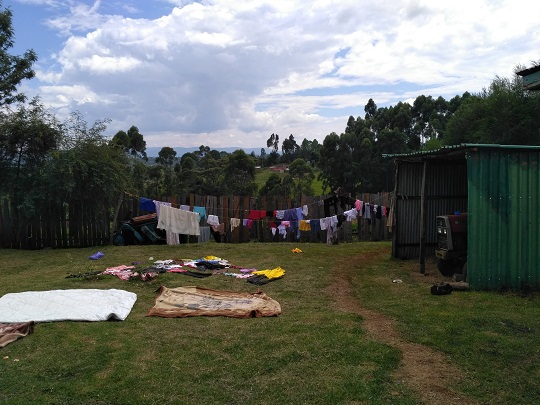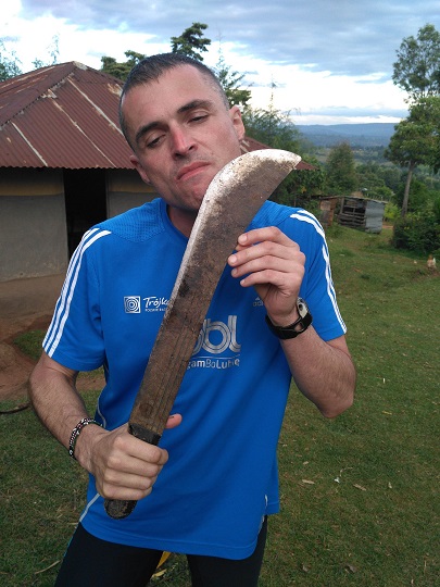 Dzień zaczął się od śniadania do łóżka. Chłopak z obsługi o 8 rano przyniósł nam do pokoju dwa tosty, dwa jajka ugotowane na twardo oraz termos z obrzydliwie słodką herbatą z mlekiem. O 11 byliśmy umówieni z Cornelem, że po nas przyjedzie do hotelu i zawiezie do swojego domu na rodzinny obiad. Potem mieliśmy w planach jechać już do Iten. Spakowaliśmy więc nasze plecaki i naiwnie licząc na kenijską punktualność o 11 czekaliśmy przed hotelem. Cornel spóźnił się ponad godzinę… jak się okazało nasz akademicki kwadrans to w Kenii prawie 2h… Dzieliło nas raptem 20 km, w tym czasie sami byśmy do niego dojechali. Ale jak powiedział Cornel lepiej późno niż wcale… W trakcie naszego czekania podjechał do nas chłopak na motorze, oferując podwiezienie. Widać nie miał nic innego do roboty, bo stał tak z nami i rozmawiał przez dobrą godzinę. O podobieństwach i różnicach między naszymi krajami, o związkach damsko męskich, edukacji itp. Poprosił yacoola, by następnym razem zabrał z sobą jakąś młodszą dziewczynę, która mogłaby być jego żoną. Miał 26 lat. Uświadomiłam mu, ku jego zdziwieniu, że z białą kobietą będzie miał same problemy, będzie musiał sprzątać w domu, robić zakupy, zajmować się dziećmi, pracować. Myślę, że skutecznie mu wybiłam ten pomysł z głowy… Ale stojąc tak i gadając wspomniał nagle, że kilkaset metrów dalej mieszka Pamela Jelimo, Mistrzyni Olimpijska z Pekinu na 800 m. Jak w końcu przyjechał Cornel poprosiliśmy, by nas tam zawiózł. Pojechaliśmy wszyscy razem. Pameli nie było, ale była dziewczyna, która pomaga jej zajmować się domem i 2 letnią córką. Zaprosiła nas do domu, byśmy zaczekali. Dom był duży, na podwórku suszyły się koce, w garażu stał traktor, a w tle leciały na cały regulator kolędy, jingle bells itp. Na ścianach salonu nie wisiały żadne medale, puchary. Na szafce dojrzałam przysłonięty innymi szpargałami dyplom z Pekinu.
