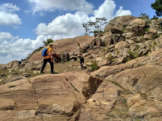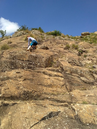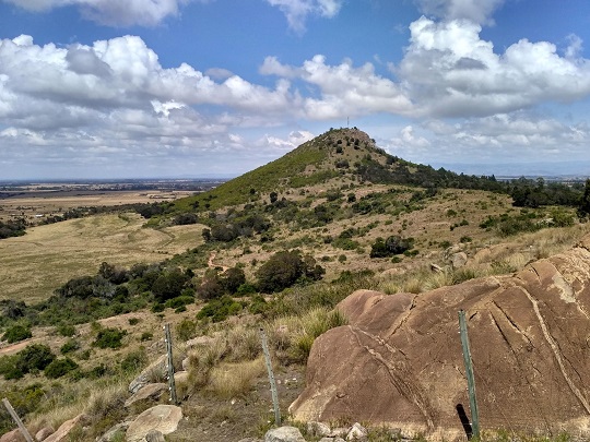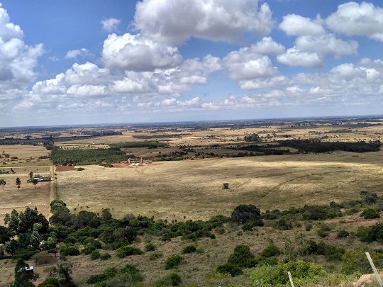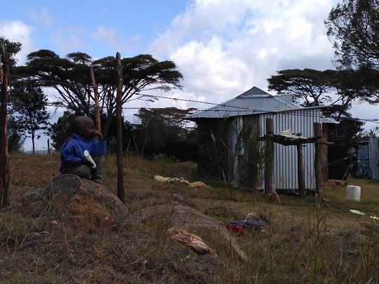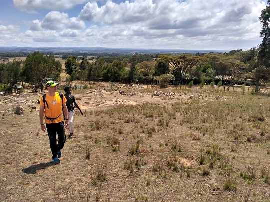 Dojechaliśmy do końca drogi. Zostawiliśmy rowery przy jedynym obejściu i dalej poszliśmy pieszo. Okazało się, że na górę nie wejdziemy. Cały teren dookoła niej jest ogrodzony i wkrótce powstanie tu rezerwat. Teren ten należał do rodziny Krugera. To ci sami, którzy mają słynny Park Narodowy Krugera w RPA. Teren ten należał do nich jeszcze przed uzyskaniem przez Kenię niepodległości, czyli przed 1963 r. Tutejsze prawo stanowi, że mogą ten teren posiadać przez 99 lat, potem ziemię przejmuje państwo. Kruger zawczasu sprzedał więc ten obszar Kenia Service Wildlife, które w przyszłym roku otworzy tu rezerwat. Wielka brama wjazdowa już jest. Na sawannie, u podnóża góry, ma powstać pole golfowe, a po drugiej stronie wzniesienia hotel. Teren ten zamieszkują żyrafy, gazele, są ponoć i lwy. Po wielkich głazach wdrapaliśmy się na szczyt mniejszego wzgórza. Widok był niesamowity. Olbrzymie otwarte przestrzenie, powiew gorącego wiatru, gdy słońce wyłaniało się zza chmur i zimno, gdy na moment zachodziło. Zauroczeni chłonęliśmy ten spokój. Na wzgórzu, wśród drzew wypatrzyliśmy stado żyraf! Było też kilka małych antylop, które chowały się w krzakach. Czekaliśmy jeszcze na lwa, ale to pewnie nie była jego pora łowów.