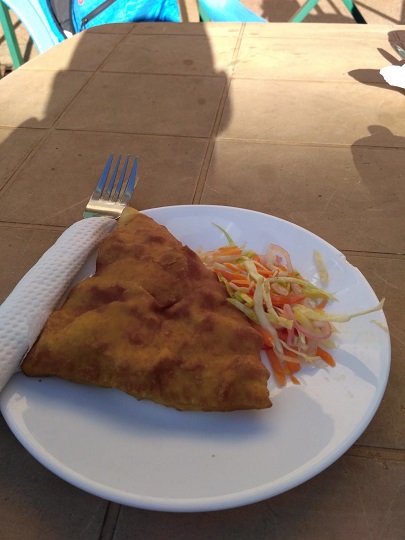 Do Iten dojechaliśmy nieźle zmęczeni. Na zjeździe z głównej drogi do hotelu, u mojej zaprzyjaźnionej sprzedawczyni kupiłam jeszcze siatkę owoców. W hotelowej restauracji zamówiliśmy sobie obiad, ja ugali z sukumą i zasmażaną kapustą, yacool ten sam zestaw, tyle że z frytkami. Poprosiliśmy też na deser o mandazi, w smaku podobne do naszych pączków, ale bez nadzienia i mniej słodkie. Wczoraj po kolacji kucharz specjalnie je dla nas usmażył. Mandazi dostaliśmy przed daniem głównym, ale kto by się tym przejmował. Na dodatek dołożyli nam do nich sałatkę z białej kapusty, marchwi, papryki i cebuli. Zestaw idealny. Ale chyba wiem skąd taki pomysł. Codziennie proszę o dokładkę tej surówki, bo bardzo mi smakuje, a standardowo dają ja tylko do ozdoby talerza. Widać w końcu zapamiętali moje zachcianki i teraz będą mi ją dokładać nawet do ciasta, a może nawet i do herbaty.