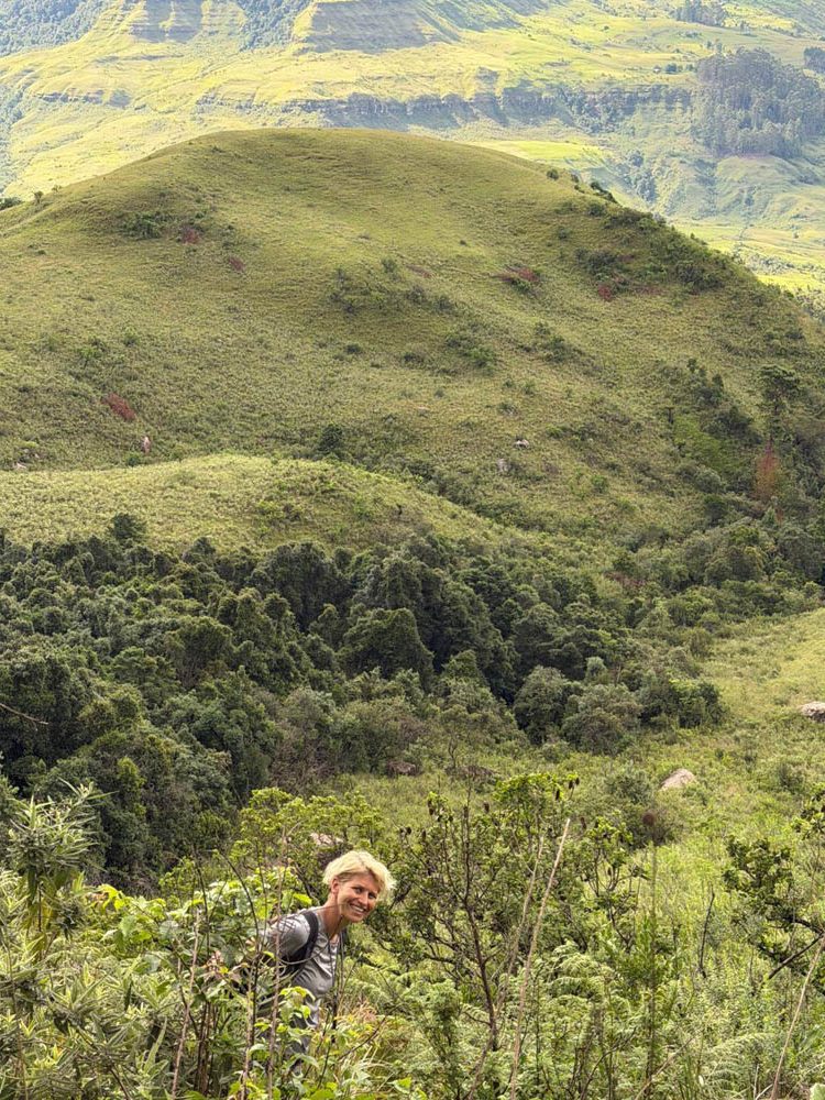 Wieczorem zaczęło mocno padać i w nocy też. Rano spotkaliśmy się z naszym guidem i ustaliliśmy najdogodniejszą na te okoliczności przyrody trasę. Okazała się świetnym wyborem. Najpierw lasem, a potem otwartymi łąkami doszliśmy do sporego wodospadu. Po drodze nasz guide pokazywał nam różne zioła i rośliny, którymi miejscowi leczą kaszel, gorączkę czy ból pleców. Były też takie, które skutecznie wykorzystywano w czasie epidemii covida. W czasie naszego marszu chmury się podniosły i mogliśmy podziwiać okolicę. Na łące pasły się konie. Chętni mogą tu wybrać się na konną przejażdżkę. Może jeszcze nadarzy się okazja przy kolejnej wizycie w tym regionie…