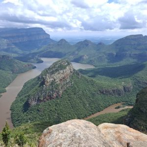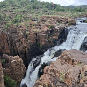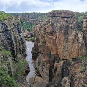 Zaczęliśmy od odwiedzenia wodospadu Berlin Falls. Nazwano go tak na cześć niemieckich osadników, poszukiwaczy złota. Później był przepiękny punkt widokowy Three Rondavels. Zielony kanion Blyde River i sama wijąca się niczym wstążka rzeka wzbudziły wiele zachwytów. Oczy i achy kontynuowaliśmy przy Burke’s Luck Potoles. Ironiczna nazwa „szczęśliwe dziury Burke’a” odnosi się do pechowego poszukiwacza złota, który w okolicy spędził całe życie na szukaniu kruszcu, bez skutku. Jak na ironię niedługo po jego śmierci w okolicy znaleziono złoto i to w dużych ilościach. Łączące się tu dwie rzeki oraz osad i kamienie, które nanosi woda, bajecznie wyrzeźbiły kanion.