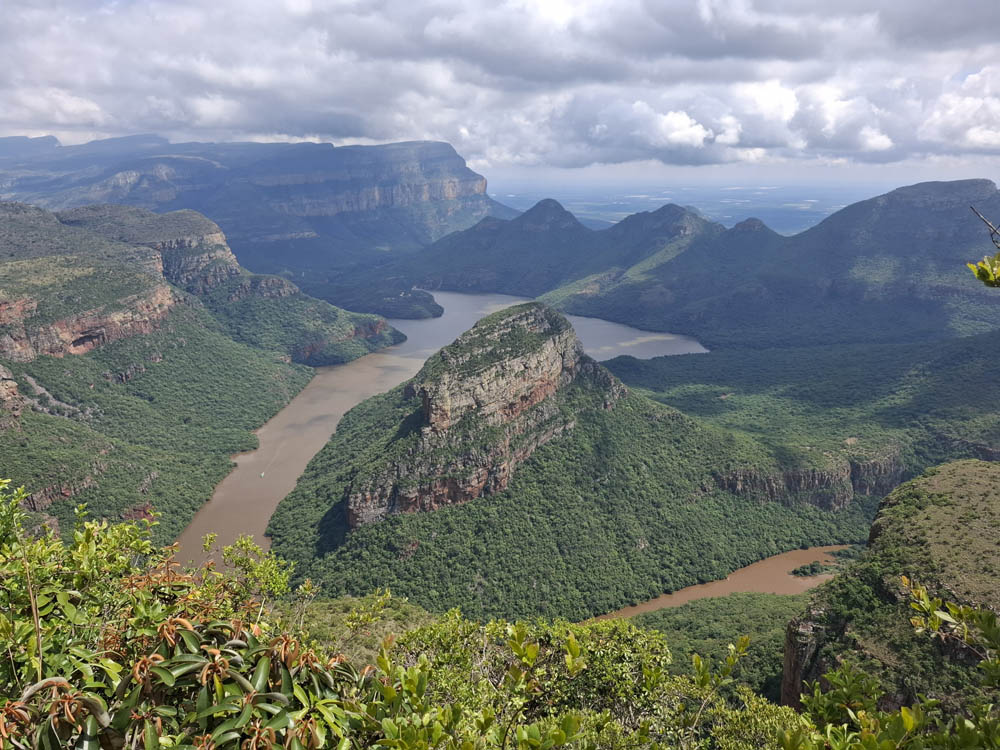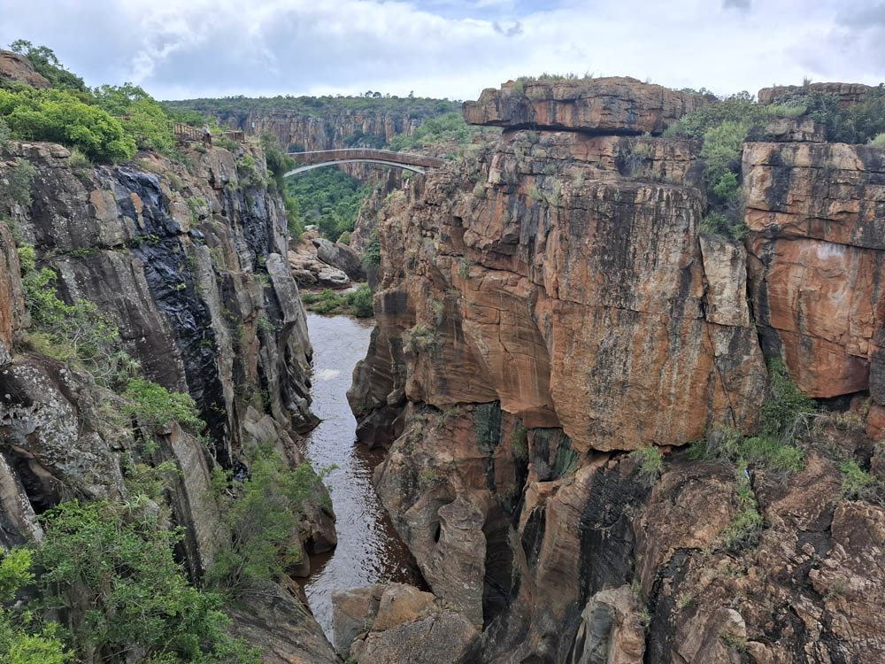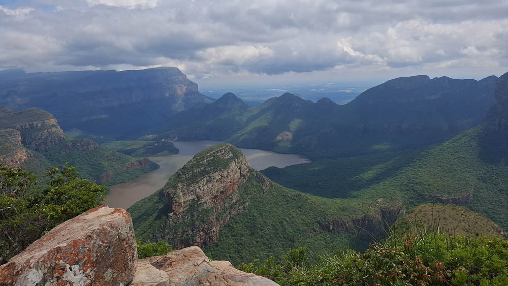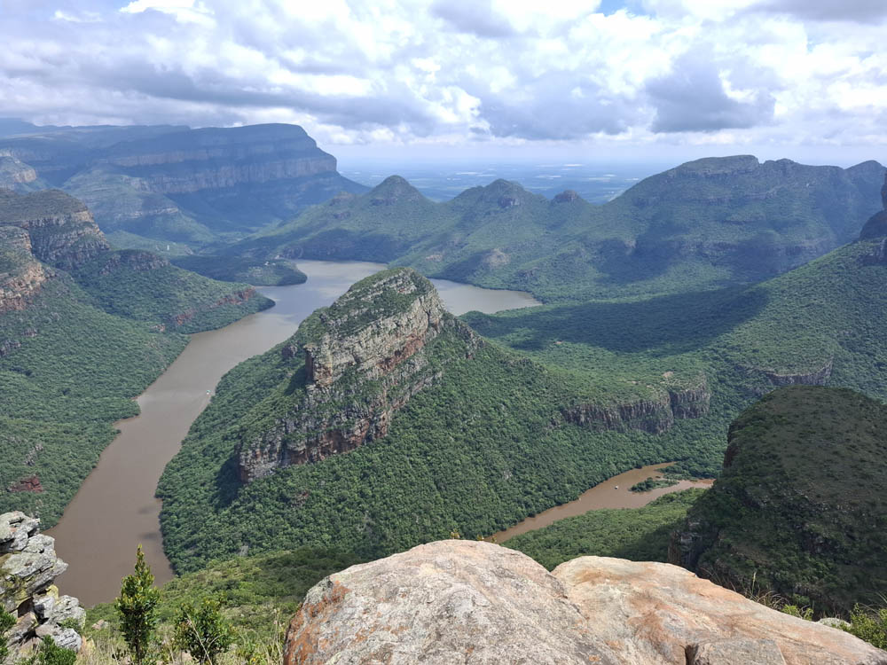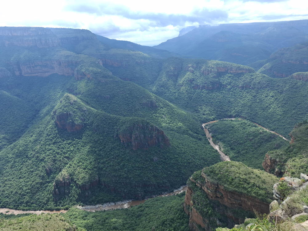 Zaczęliśmy od odwiedzenia wodospadu Berlin Falls. Nazwano go tak na cześć niemieckich osadników, poszukiwaczy złota. Później był przepiękny punkt widokowy Three Rondavels. Zielony kanion Blyde River i sama wijąca się niczym wstążka rzeka wzbudziły wiele zachwytów. Oczy i achy kontynuowaliśmy przy Burke’s Luck Potoles. Ironiczna nazwa „szczęśliwe dziury Burke’a” odnosi się do pechowego poszukiwacza złota, który w okolicy spędził całe życie na szukaniu kruszcu, bez skutku. Jak na ironię niedługo po jego śmierci w okolicy znaleziono złoto i to w dużych ilościach. Łączące się tu dwie rzeki oraz osad i kamienie, które nanosi woda, bajecznie wyrzeźbiły kanion.
